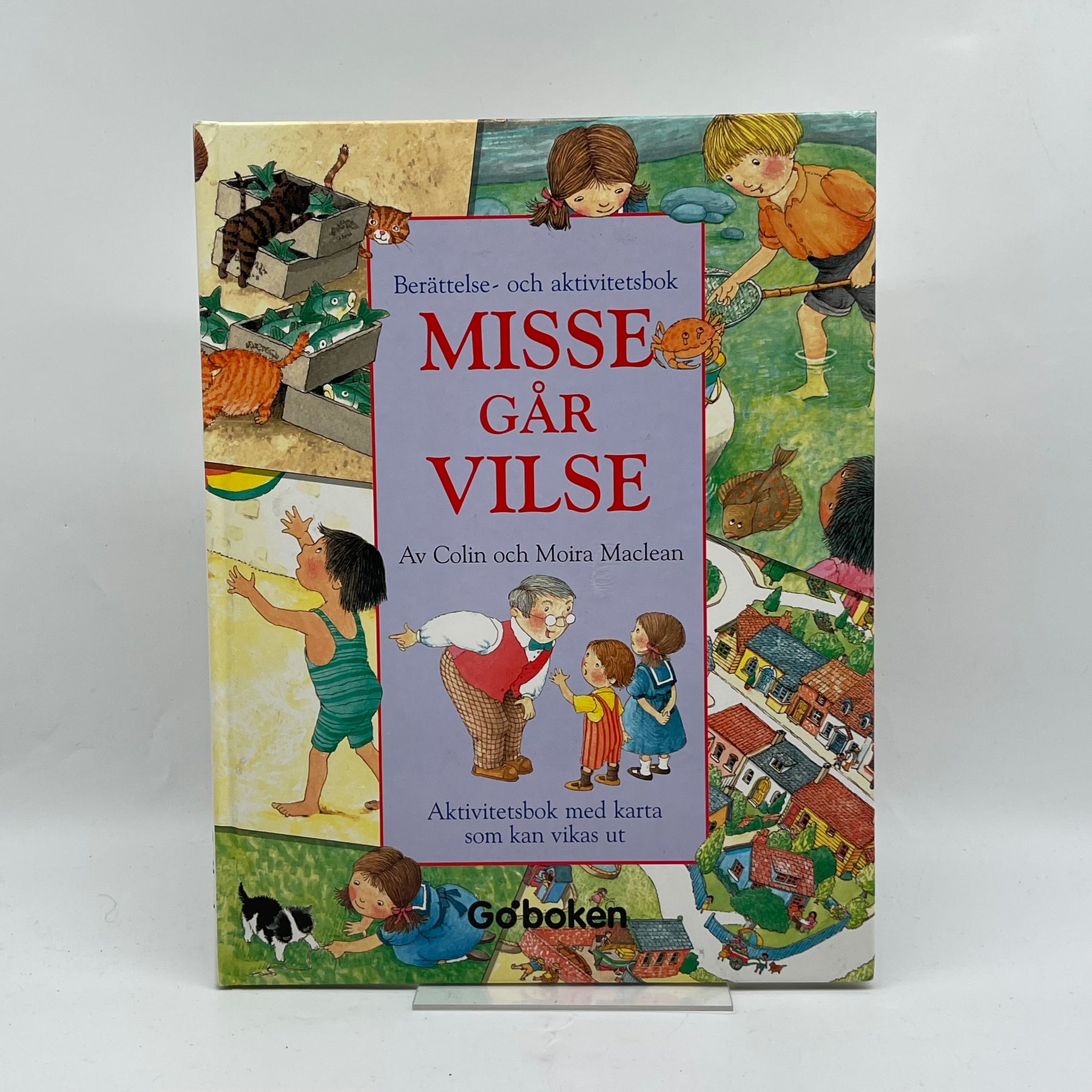 "Misse går vilse" är en kombinerad berättelse- och aktivitetsbok som bjuder in barn till en värld av äventyr och lärande. Följ med Anna och Patrik när de letar efter Misse, deras mosters katt som försvunnit. Boken är perfekt för att underhålla och utbilda små barn med sin fängslande berättelse och interaktiva element som siffror, ord och roliga aktiviteter, inklusive en utfällbar karta. Boken är begagnad men i mycket gott skick och väntar på att bli en del av ett nytt barns uppväxt.Produktspecifikationer