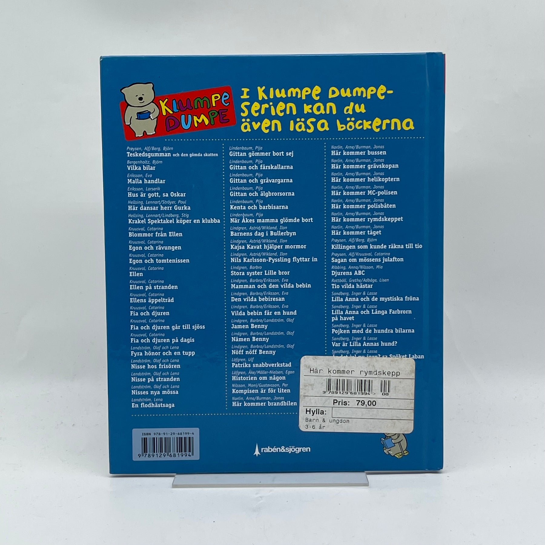 Upplev spänningen med "Här kommer rymdskeppet" – en charmig och lärorik barnbok från serien Klumpe Dumpe.