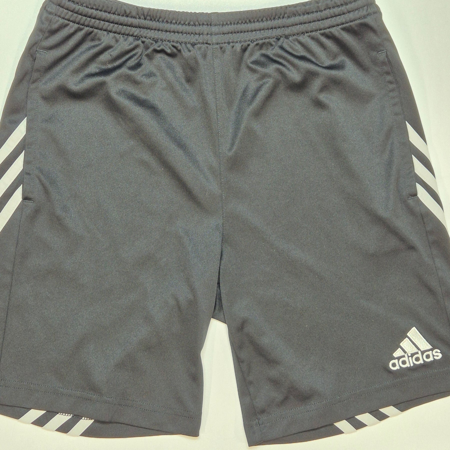Dessa shorts från Adidas är perfekta för såväl sport som fritidsaktiviteter. Den klassiska svarta färgen med vita ränder längs sidorna skapar en tidlös look. Tillverkade i ett lätt och andningsbart material, de är idealiska för fotboll, löpning eller gymmet. Produkten är begagnad men i mycket gott skick, vilket gör dem till ett utmärkt köp för den prismedvetna sportentusiasten.Produktspecifikationer