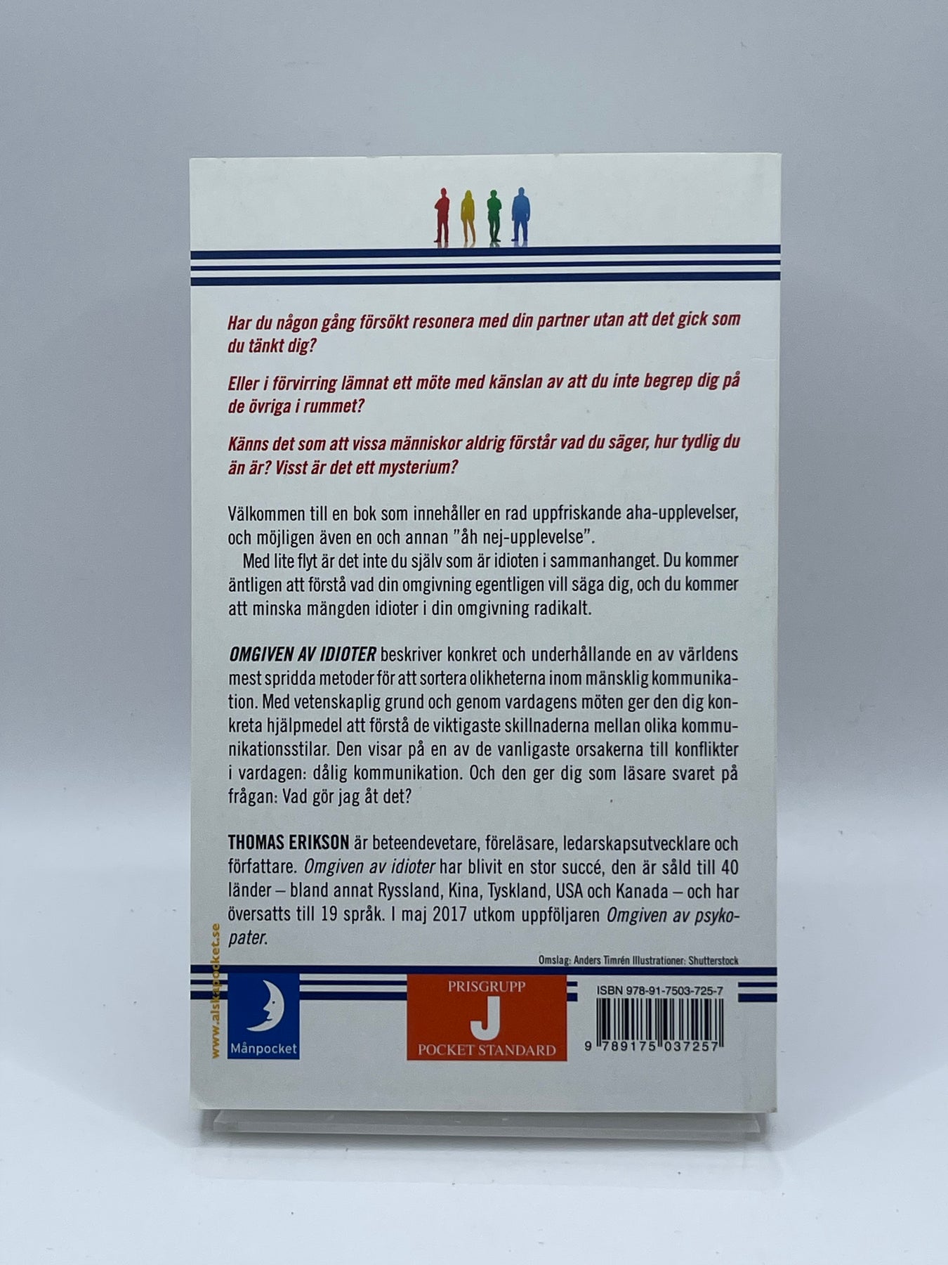 "Omgiven av idioter" är en fascinerande bok som utforskar olika kommunikationsstilar och hur dessa kan påverka relationer i både privatlivet och på arbetsplatsen. Författaren Thomas Erikson använder färgmodeller för att illustrera interpersonliga skillnader och erbjuder praktiska tips för att förstå och hantera olika personlighetstyper. Boken är begagnad men fortfarande i mycket gott skick, och innehåller värdefulla insikter som kan förbättra dina kommunikationsförmågor avsevärt.