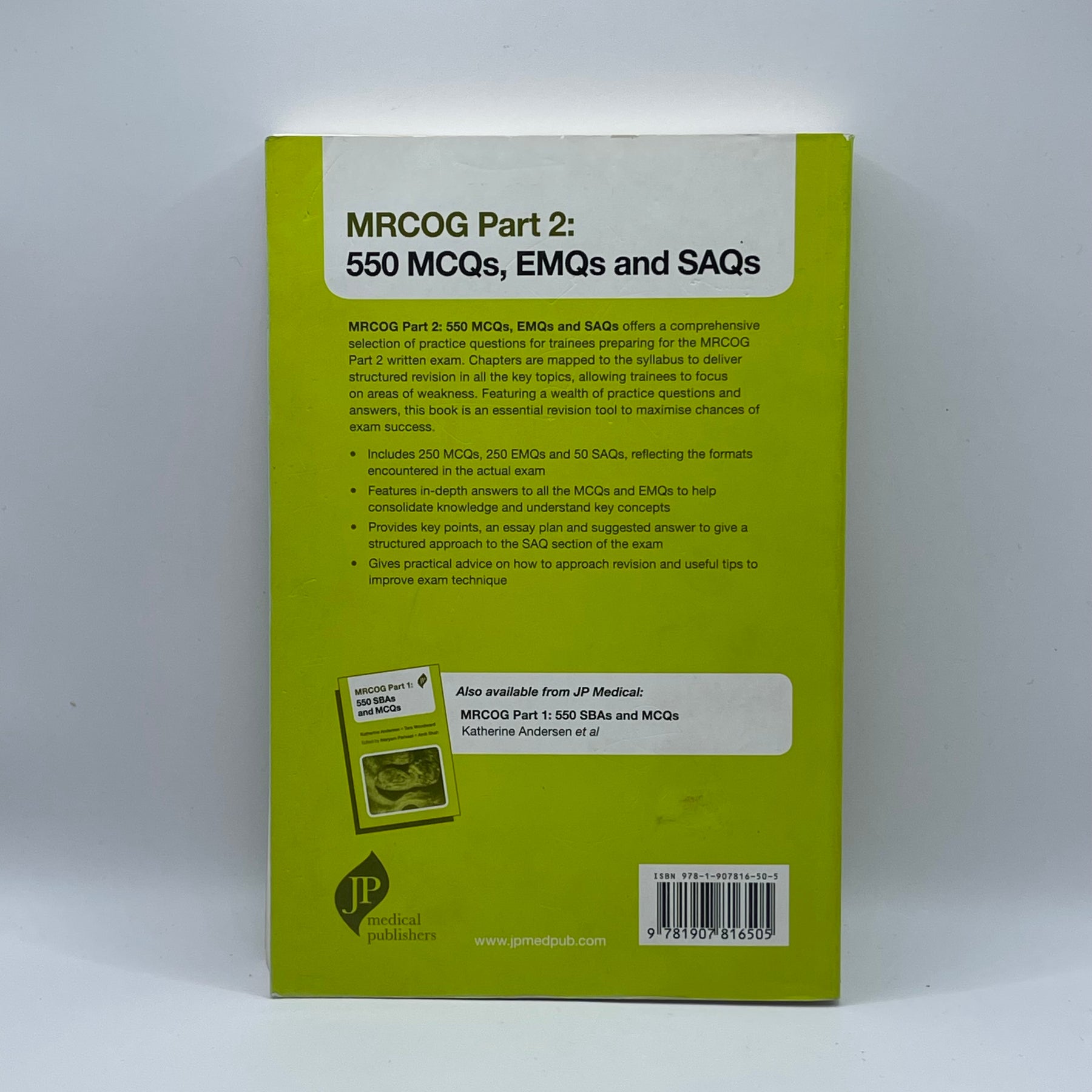 Upptäck en skatt för medicinstuderande – "MRCOG Part 2: 550 MCQs, EMQs and SAQs", en värdefull resursbok.Produktbeskrivning