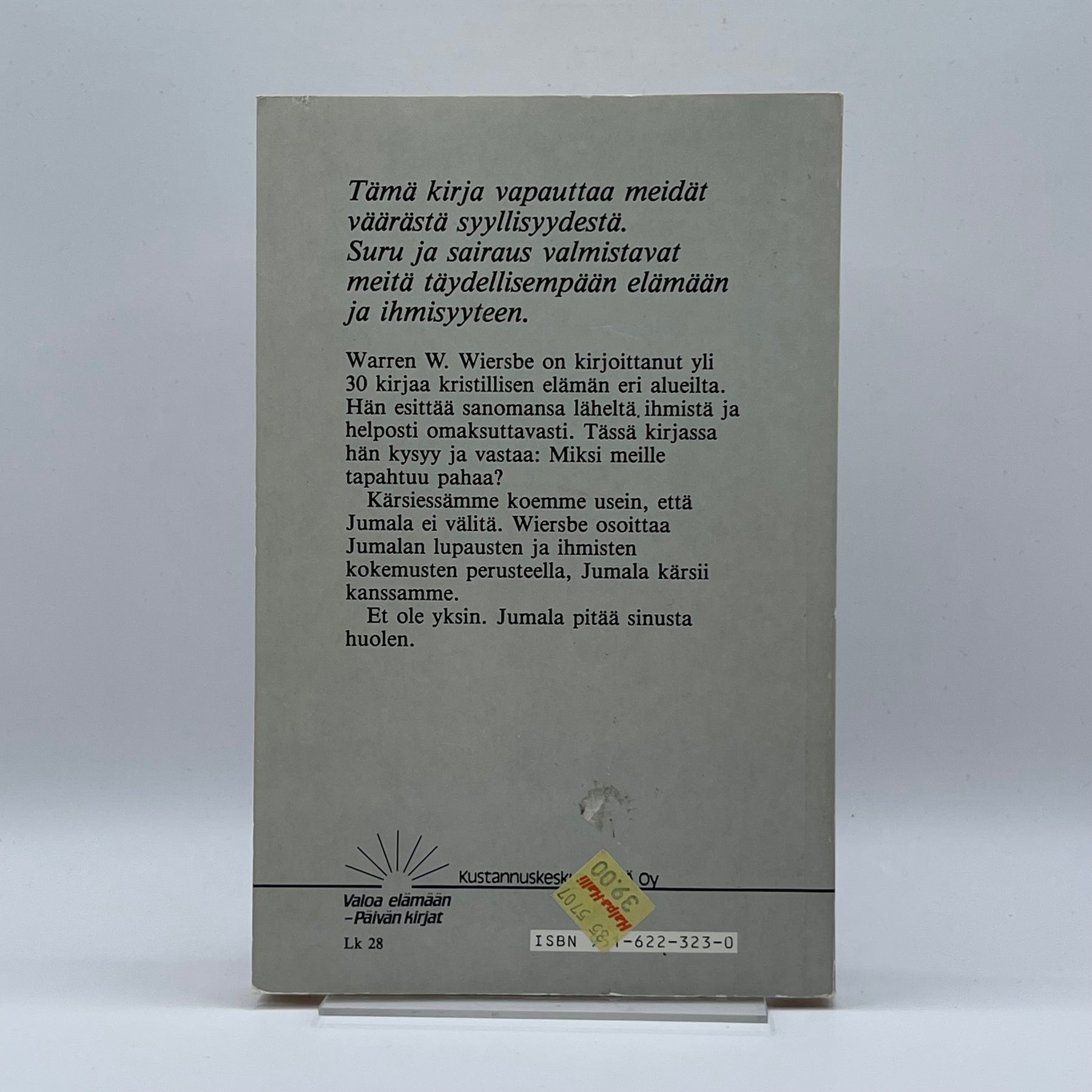 Denna bok, "Miksi pahaa tapahtuu Jumalan ihmislille?" av Warren W. Wiersbe, är en gripande läsning för de som söker svar på svåra livsfrågor. Boken belyser teman som lidande och Guds närvaro i svåra tider och är skriven med klarhet och djup. Den är perfekt för både personlig eftertanke och gruppdiskussioner. Boken är begagnad men i gott skick, med några tecken på användning som inte påverkar läsbarheten.3. Produktspecifikationer