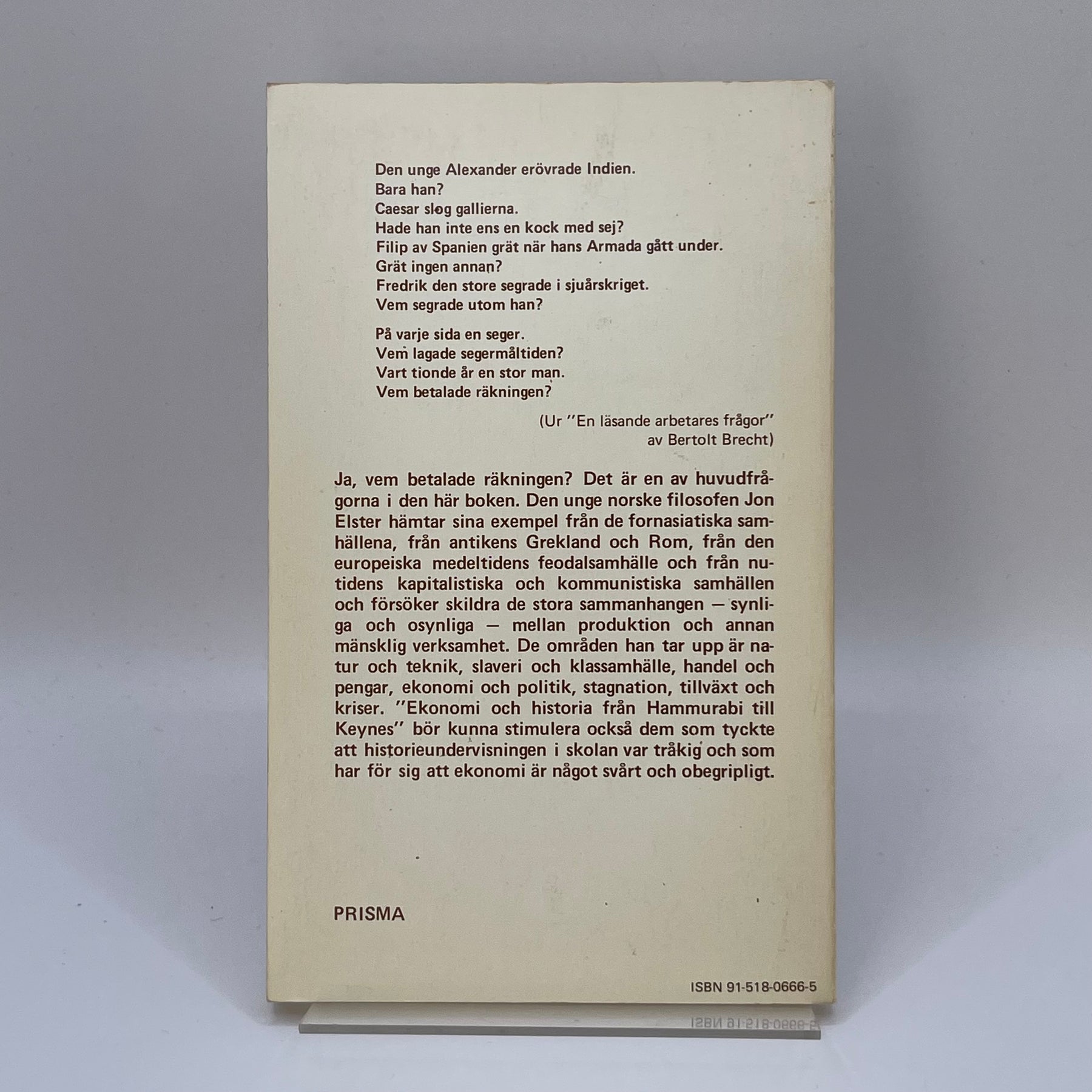 Denna bok är en djupdykning i ekonomins vikt i samhället från antiken till modern tid, skriven av Jon Elster. För den som är intresserad av både historia och ekonomi erbjuder boken en detaljerad och lättfattlig framställning. Är i mycket gott skick med vissa spår av användning som bidrar till dess charm.