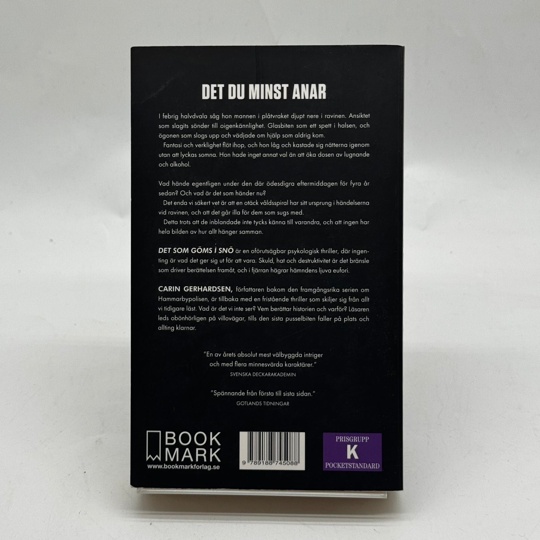"Det som göms i snö" är en fängslande deckare från Carin Gerhardsen, känd för sin förmåga att skapa djupgående och komplexa karaktärer som vindlar sig genom intrikata intrigtrådar. Denna roman tar med dig på en psykologisk resa genom mörka hemligheter och oväntade vändningar, vilket gör den till en perfekt läsning för alla som älskar psykologiska thrillers. Boken är begagnad men fortfarande i mycket gott skick, vilket gör den till ett utmärkt tillskott till varje bokhylla.Produktspecifikationer