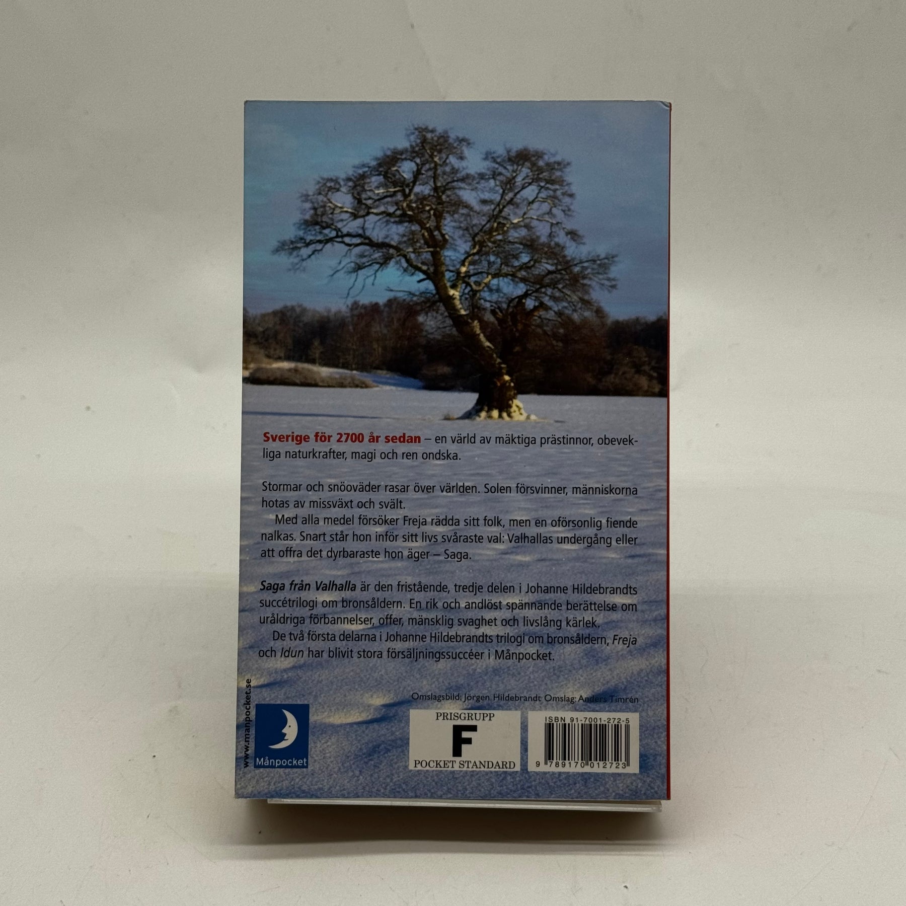"Saga från Valhalla" är den efterlängtade tredje delen i Johanne Hildebrandts hyllade serie, som blandar historia med mytologi i en gripande berättelse om makt, svek och heroism. Denna pocketversion är perfekt för historieintresserade som uppskattar en stark kvinnlig huvudkaraktär och en välskriven plot. Boken är begagnad men i mycket gott skick, vilket gör den till ett utmärkt tillskott till varje boksamling.Produktspecifikationer