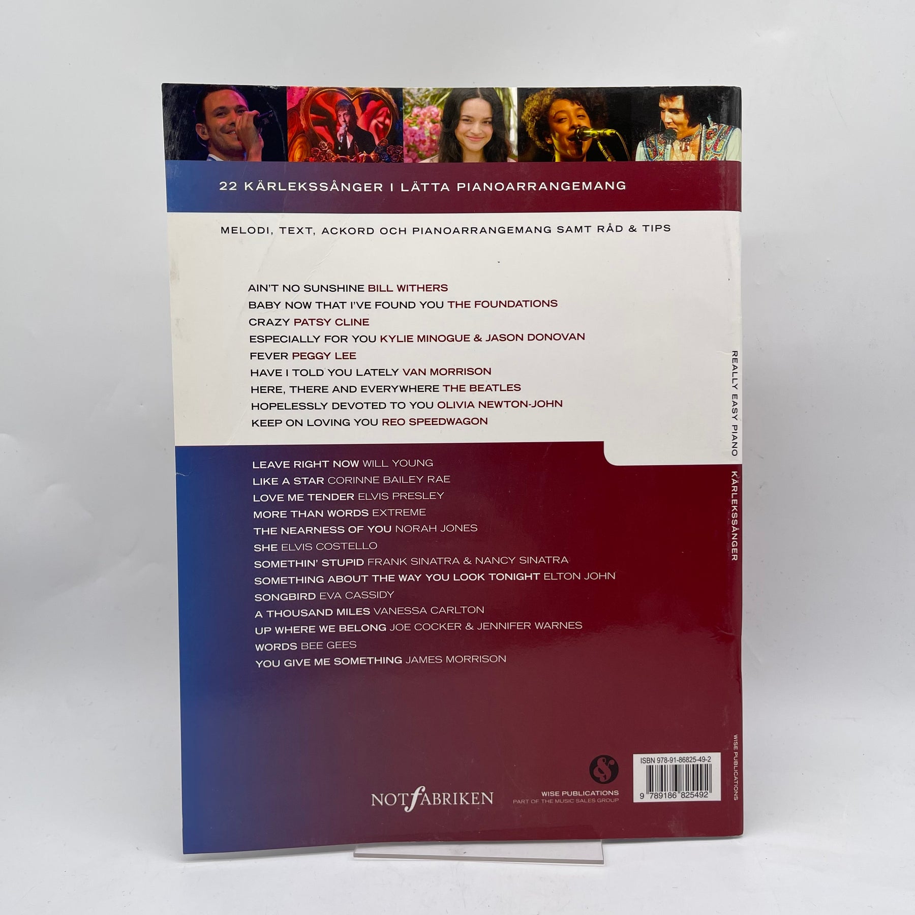 Denna bok, "Kärlekssånger", erbjuder en samling lättarrangerade melodier perfekta för pianister på alla nivåer. Med klassiker från artister som Bill Withers och The Beatles, kombinerar denna volym nostalgi med enkla pianosatser. Notboken är i mycket gott skick och idealisk för både nybörjare och mer erfarna pianister som önskar lägga till romantiska klassiker till sitt repertoar.Produktspecifikationer