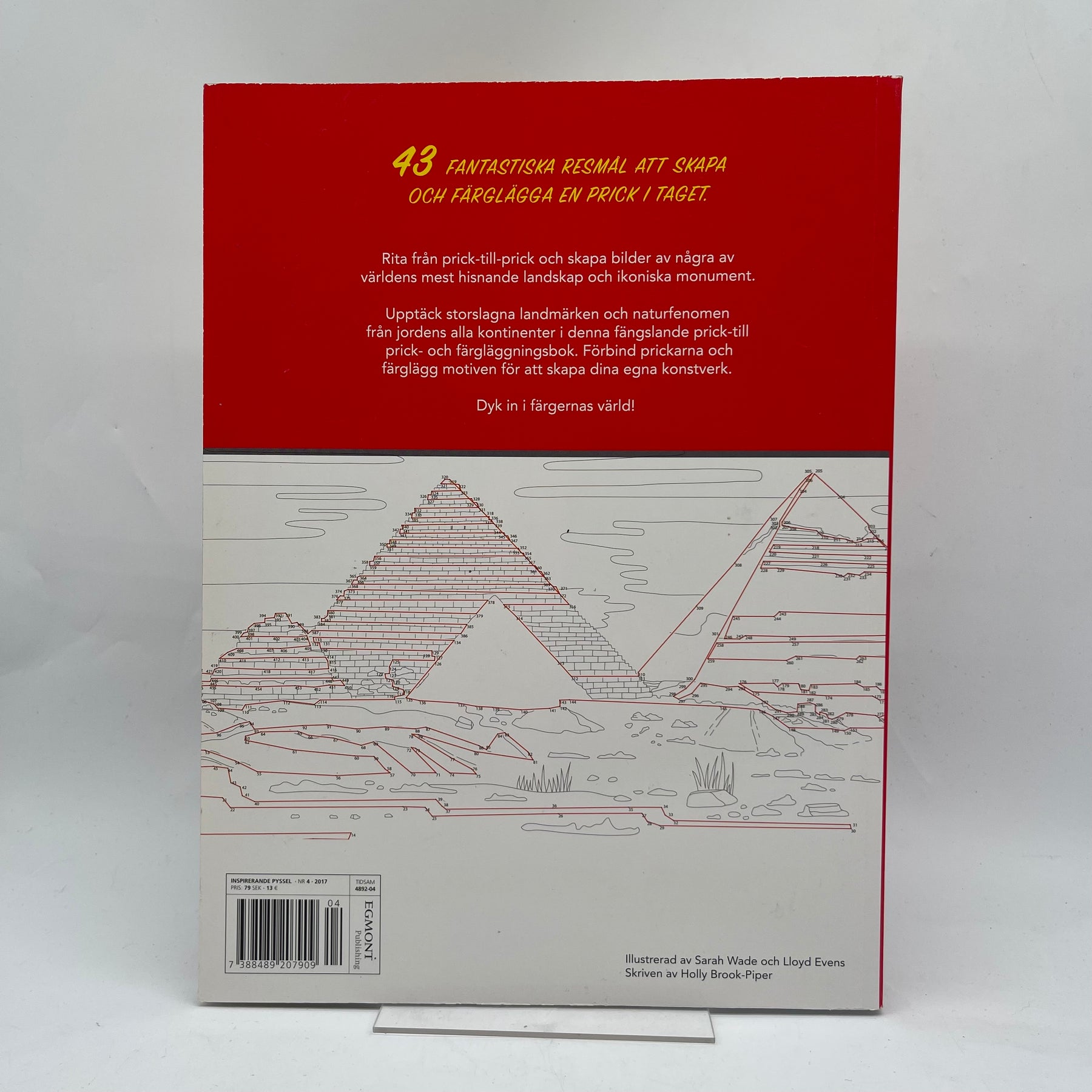 Denna unika prick-till-prick-bok tar med dig på en resa runt om i världen genom 43 underbara motiv. Boken frammanar platser från universums alla hörn på ett nyskapande och interaktivt sätt. Perfekt för både barn och vuxna som älskar att färglägga och utforska nya kulturer och landskap. Boken är i mycket gott skick och ger en både rofyllt och lärorikt tidsfördriv.Produktspecifikationer