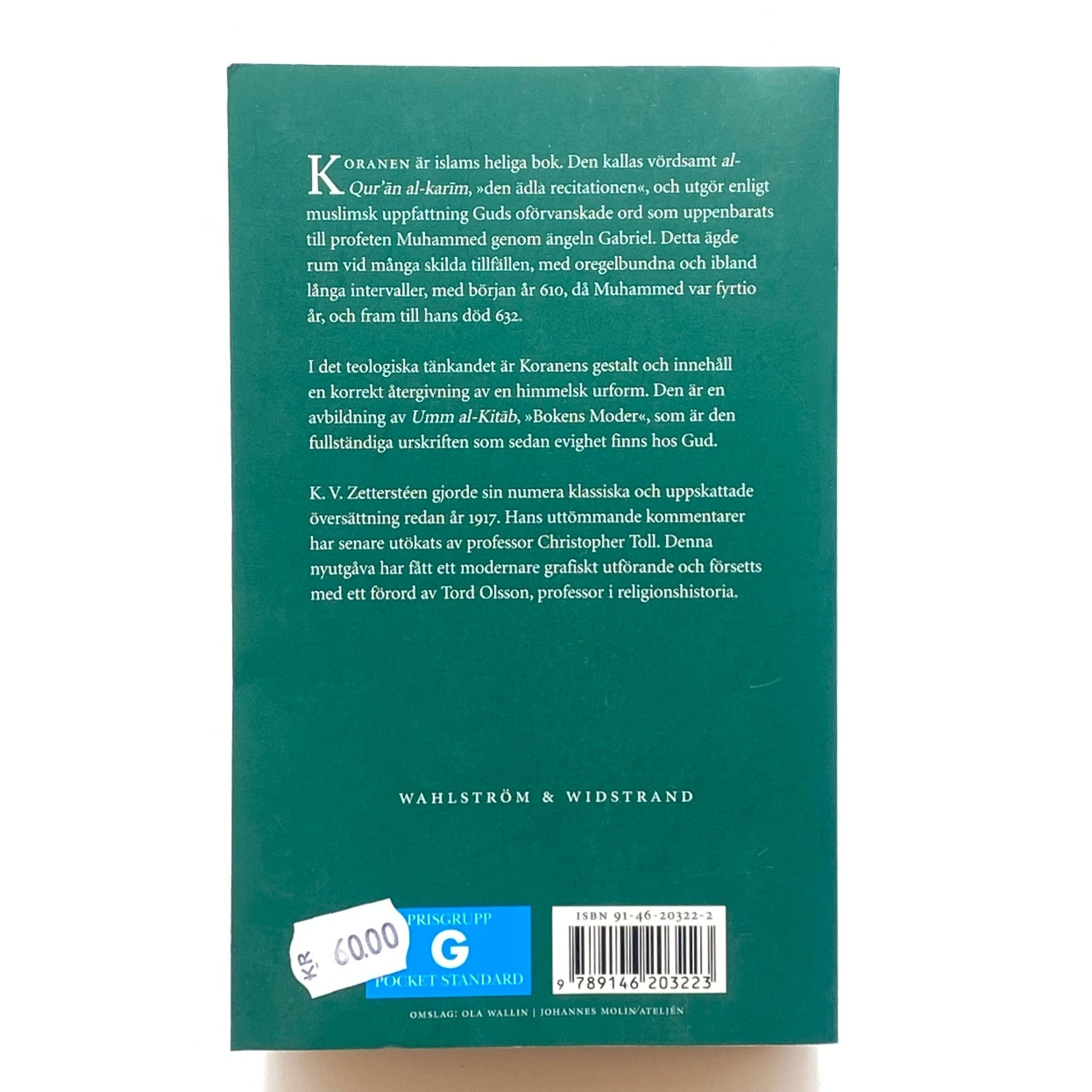 1. Produktinformation Upptäck en klassiker inom religiös litteratur, "Koranen" i en elegant och tidlös utgåva. 2. Produktbeskrivning Detta är ett exemplar av "Koranen", presenterad i en djupgrön hårdbandutgåva med gyllene textdetaljer på omslaget. Utgiven av Wahlström & Widstrand, denna utgåva inkluderar K.V. Zettersténs kända översättning och kommentarer som gör texten tillgänglig för moderna läsare. Perfekt för såväl studerande som samlare av religiösa skrifter, begagnad men i mycket gott skick. 3. Produktspecifikationer