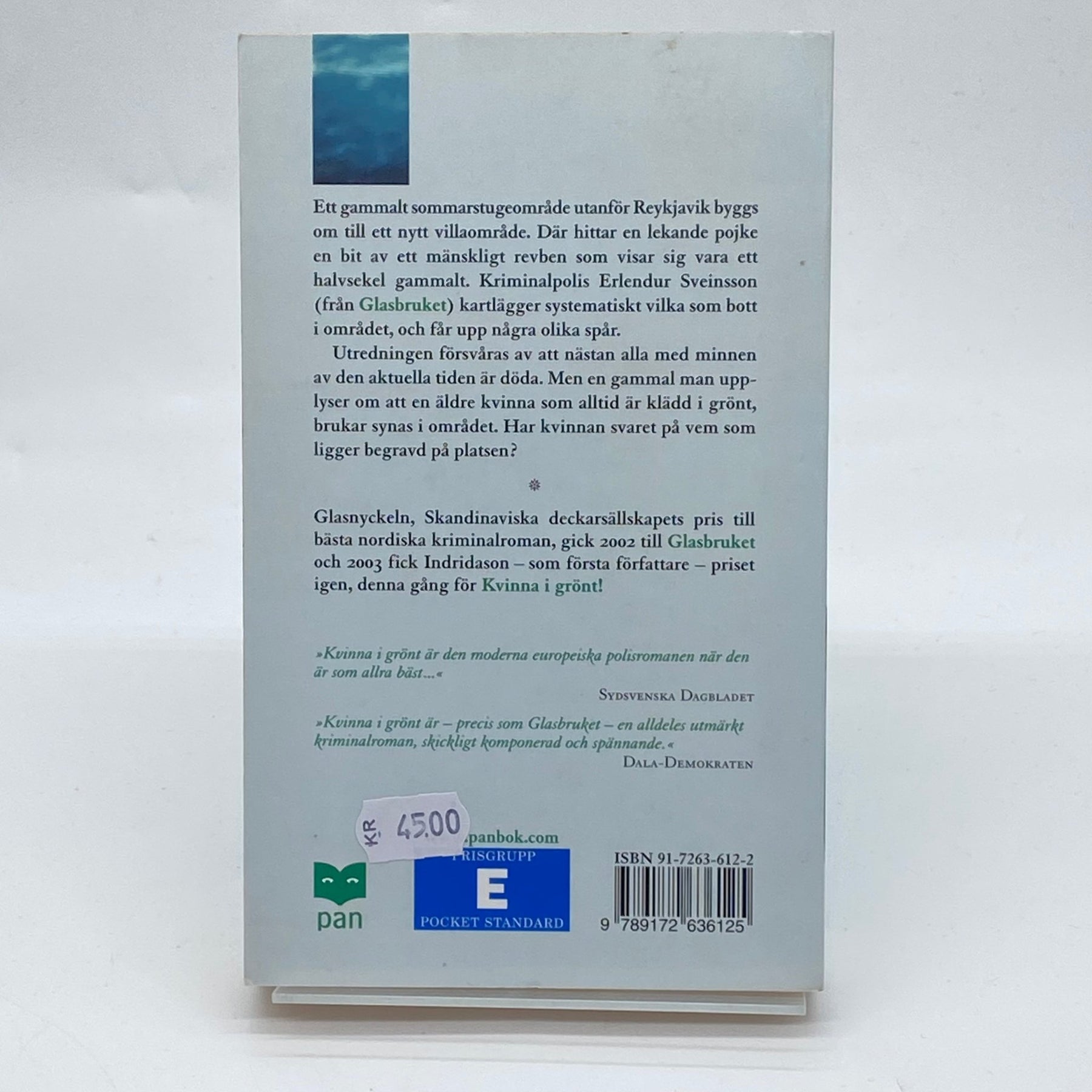 Denna bok är en del av en älskad serie som har förtrollat deckarläsare över hela Norden. "Kvinna i grönt" kombinerar mysterium och spänning i en berättelse som utspelar sig i Reykjaviks mörka kanter. Perfekt för alla som älskar välutvecklade karaktärer och kluriga intriger. Boken är begagnad men i utmärkt skick.3. Produktspecifikationer (as an HTML table)