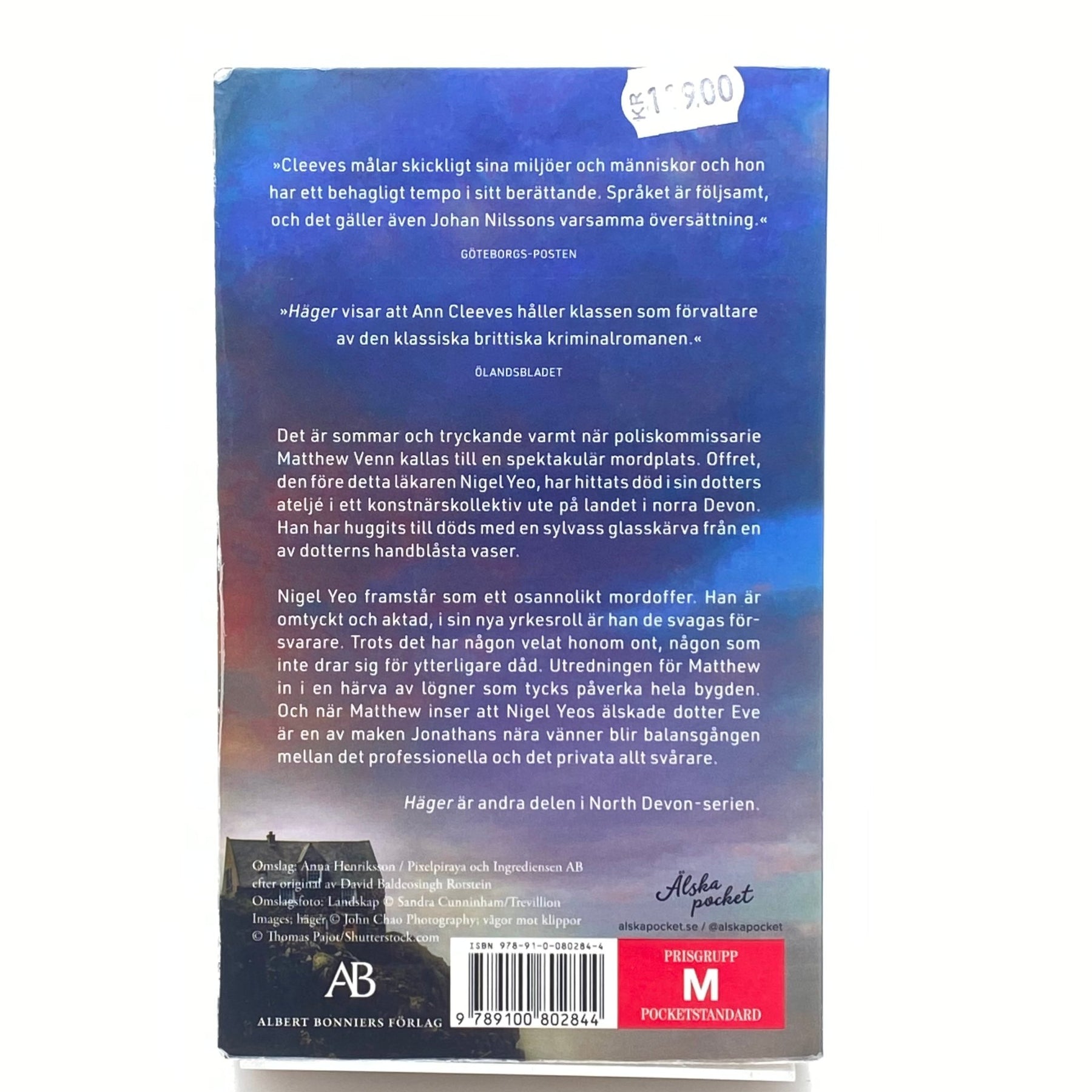 Denna bok erbjuder en fascinerande handling som tar läsaren genom oanade svängar och mörka hemligheter. | Upplev hur Ann Cleeve skickligt målar upp miljöer och karaktärer, så pass levande att du kan känna den Devoniska kustvinden i ansiktet. | "Häger" är den andra delen i North Devon-serien, vilket gör den till en perfekt fortsättning för dig som älskade den första boken. |