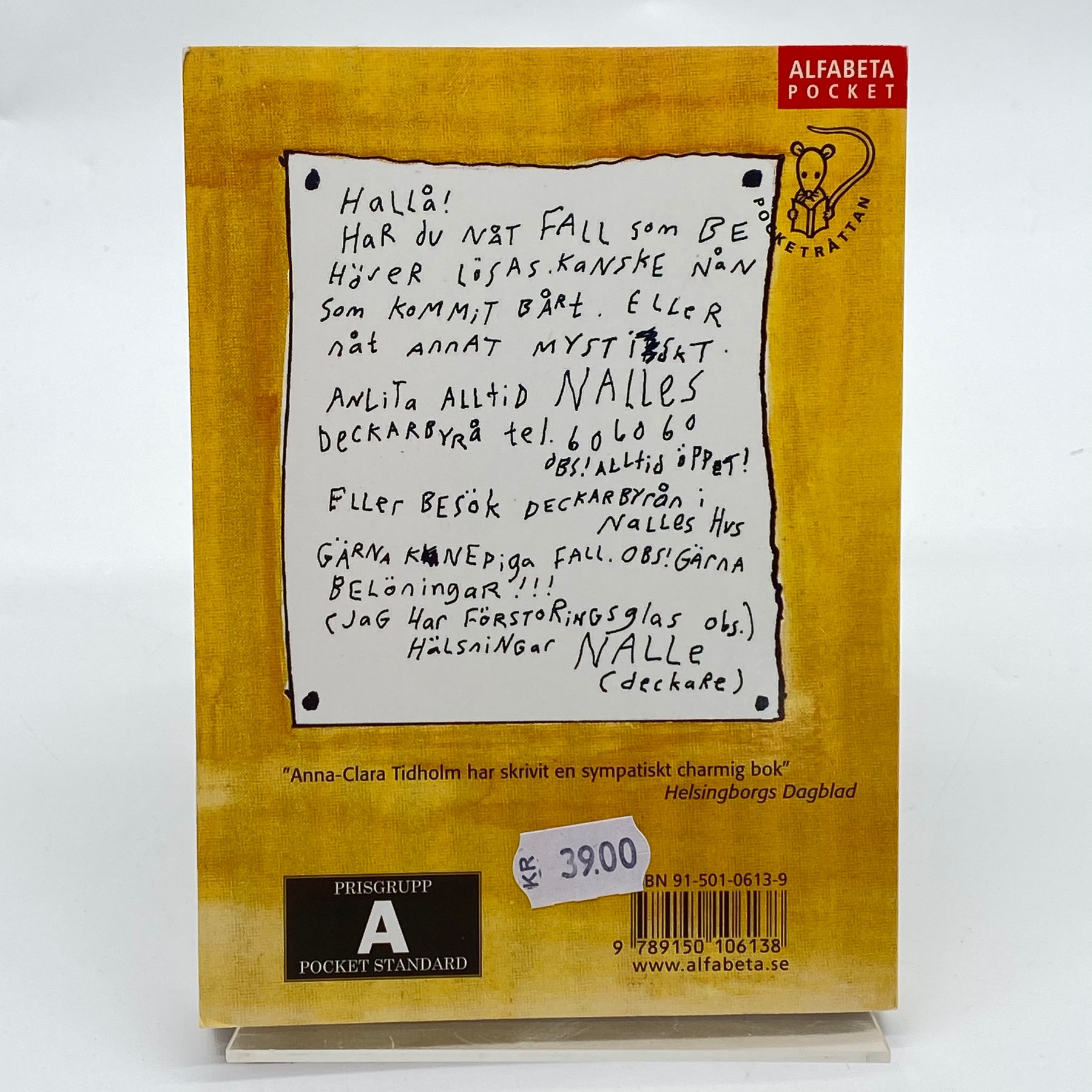 "Ett fall för Nalle" är en underhållande barnbok som bjuder in till mysterier och äventyr genom ögonen på Nalle, en detektiv av sällan skådat slag. Denna pocketbok är idealisk för unga läsare som uppskattar spänning kombinerat med humor. Boken är begagnad men i mycket gott skick, perfekt för att återuppleva eller upptäcka Nalles äventyr för första gången.Produktspecifikationer