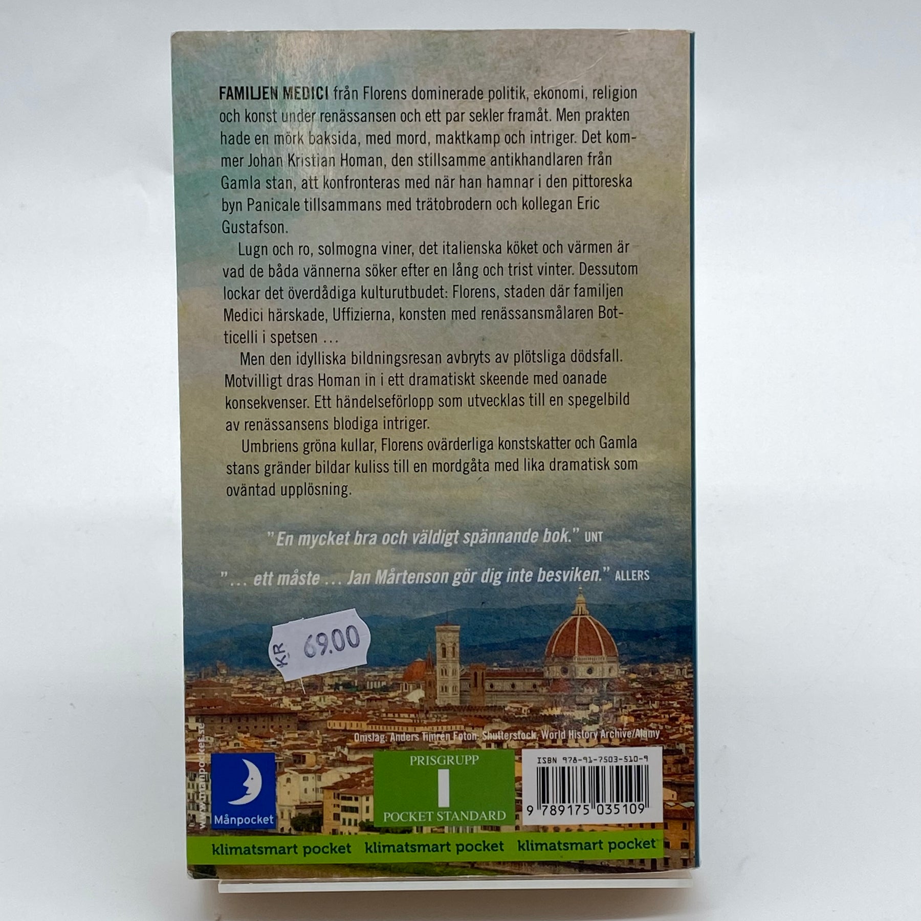 "Medicis ring" är en fängslande deckare som tar läsaren tillbaka till renässansens Florens, full av politiska intriger och mystiska mord. Författare Jan Mårtenson levererar en av hans starkaste berättelser som är perfekt för alla som älskar historiska och litterära äventyr. Boken är begagnad men i mycket gott skick, vilket gör den till ett utmärkt köp för entusiastiska läsare och samlare.