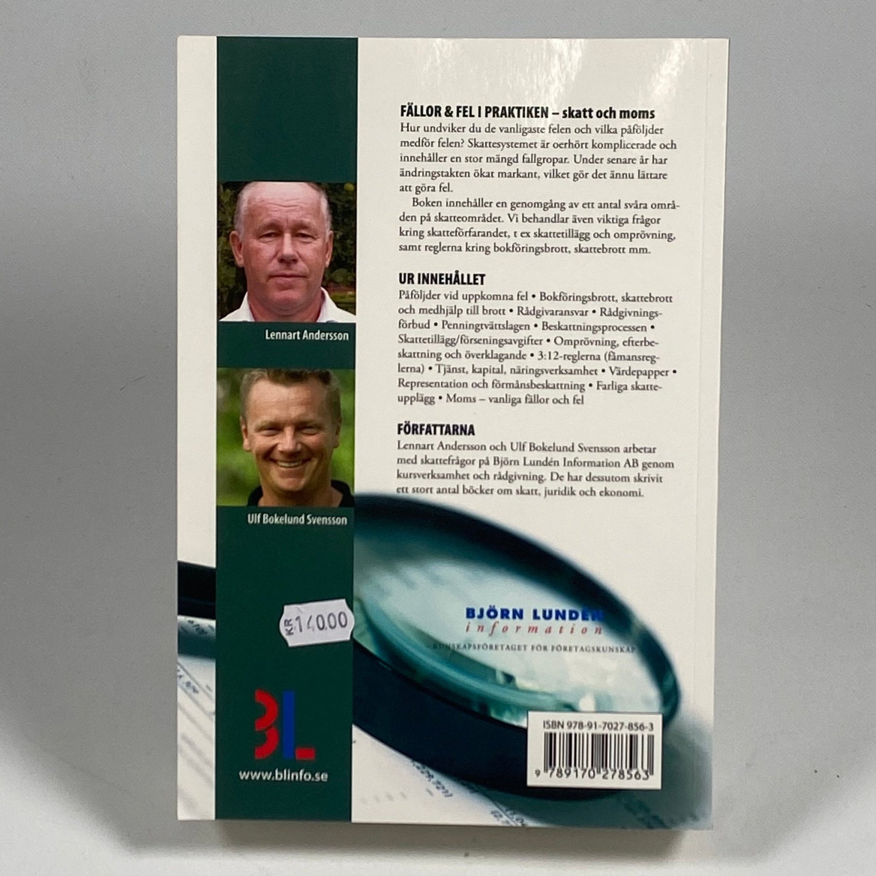 Bok om skatte- och momsfällor i praktiken, skriven av Lennart Andersson och Ulf Bokelund Svensson. Den adresserar vanliga misstag och fallgropar i skatteplanering och förklarar viktiga aspekter av svensk skattelagstiftning för praktiker. Boken är lättanvänd och riktar sig till professionella inom ekonomi och juridik.