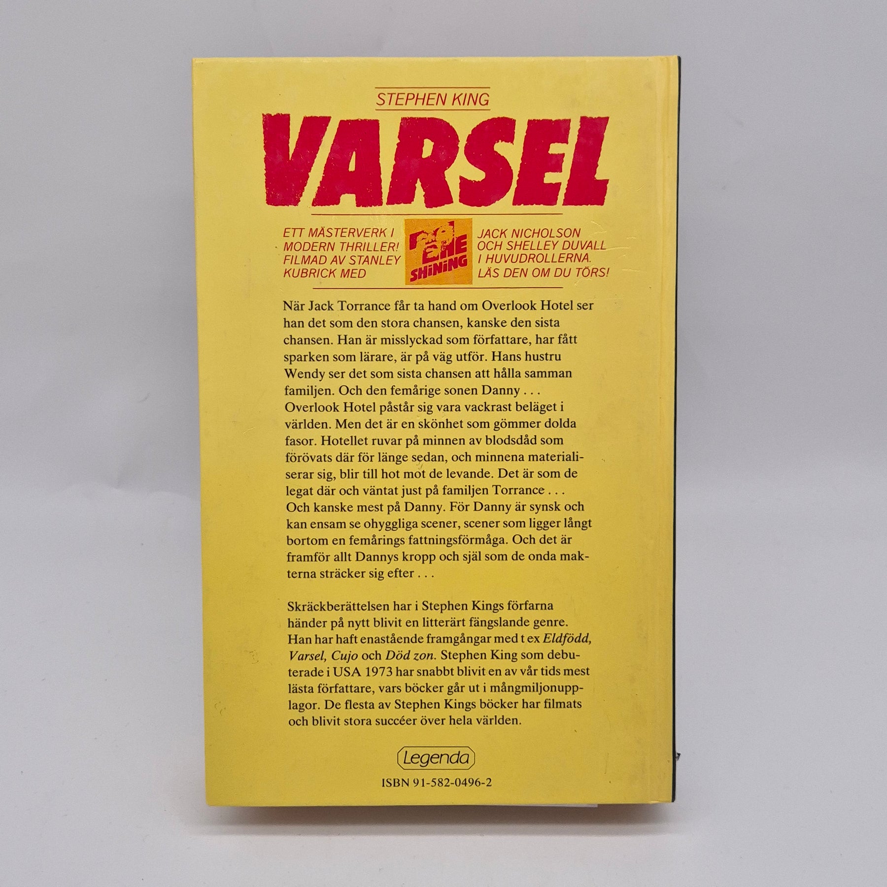 "Varsel" är en spänningsfylld roman som utforskar de mörka hörnen av mänsklig psykologi, elegant framställd av skräckmästaren Stephen King. Boken är publikt bekant för sin intensiva berättelse och djupgående karaktärsutveckling, vilket också fångades i Stanley Kubricks hyllade filmadaption. Denna kopia är en svensk utgåva, perfekt för samlare och fanatiker av Stephen Kings arbete. Boken är begagnad men i mycket gott skick.Produktspecifikationer