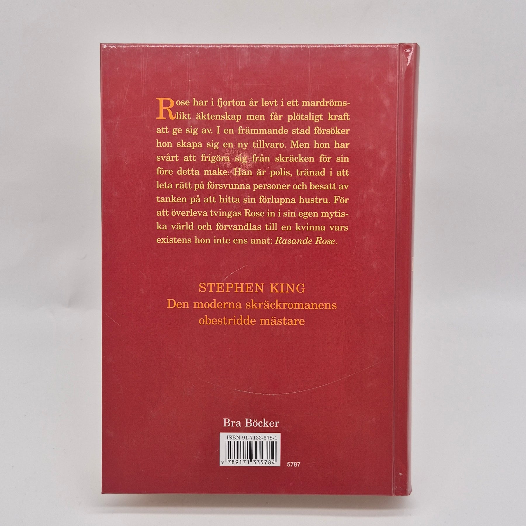 "Rasande Rose" är en fängslande roman av den välkända författaren Stephen King, som utforskar gränserna för skräck och övernaturliga fenomen. Boken erbjuder en gripande berättelse om en kvinna som kämpar för att hitta sin försvunna man och möter otaliga faror. Perfekt för dem som älskar en god thriller och vill fördjupa sig i en fantasifull värld. Boken är begagnad men i mycket gott skick, vilket gör den till ett utmärkt tillskott i varje boksamling.