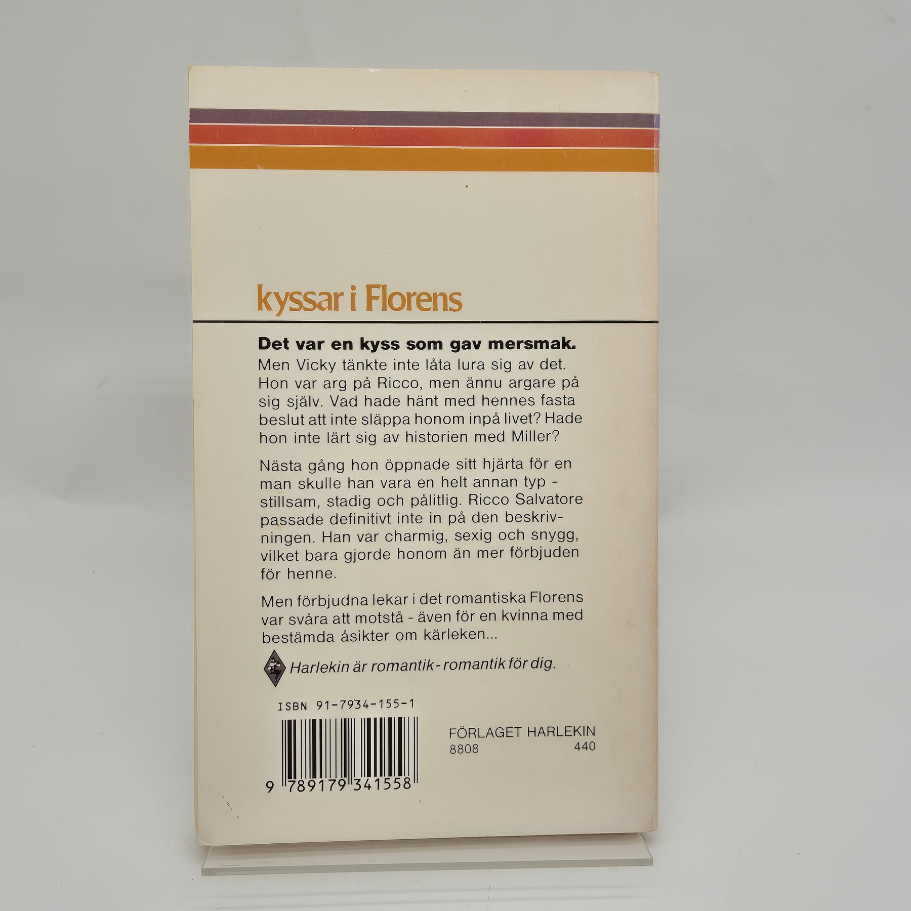 "Kyssar i Florens" är en passionerad roman från Harlekinserien, författad av den välkända Charlotte Lamb. Boken bjuder på en berättelse fylld av kärlek, dramatik och otillåtna möten i det underbart beskrivna Florens. Perfekt för en avkopplande läsning och en resa till kärlekens komplicerade värld. Boken är begagnad men i mycket gott skick och väntar på att bli en del av ditt bibliotek.Produktspecifikationer