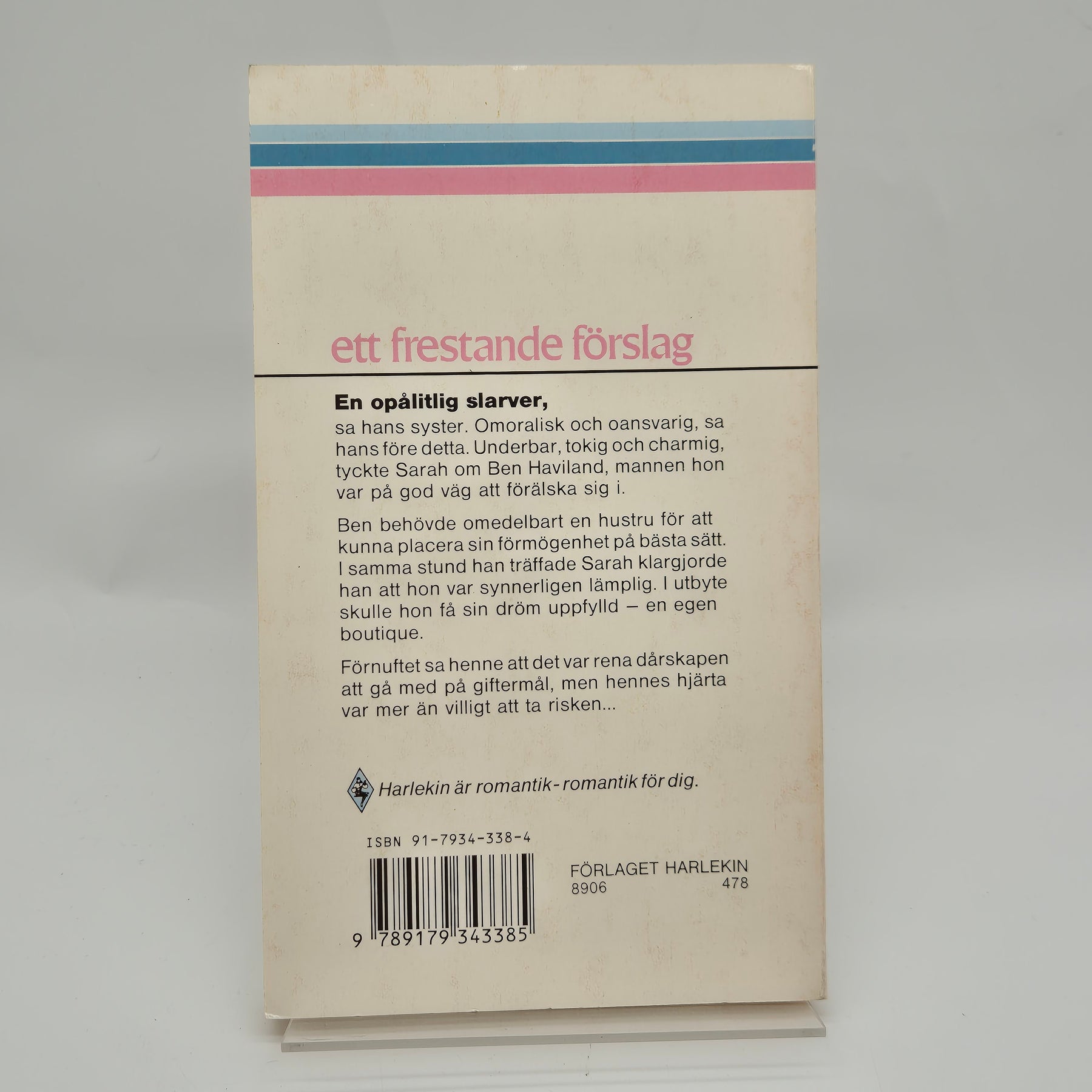 Denna spännande roman från Harlekin serien berättar historien om passion och romantiska intriger. Med sitt fängslande narrativ och komplexa karaktärer är detta en idealisk läsning för en avkopplande kväll. Boken är begagnad men väl bevarad, och lovar att leverera en utmärkt läsupplevelse till sitt nye ägare.