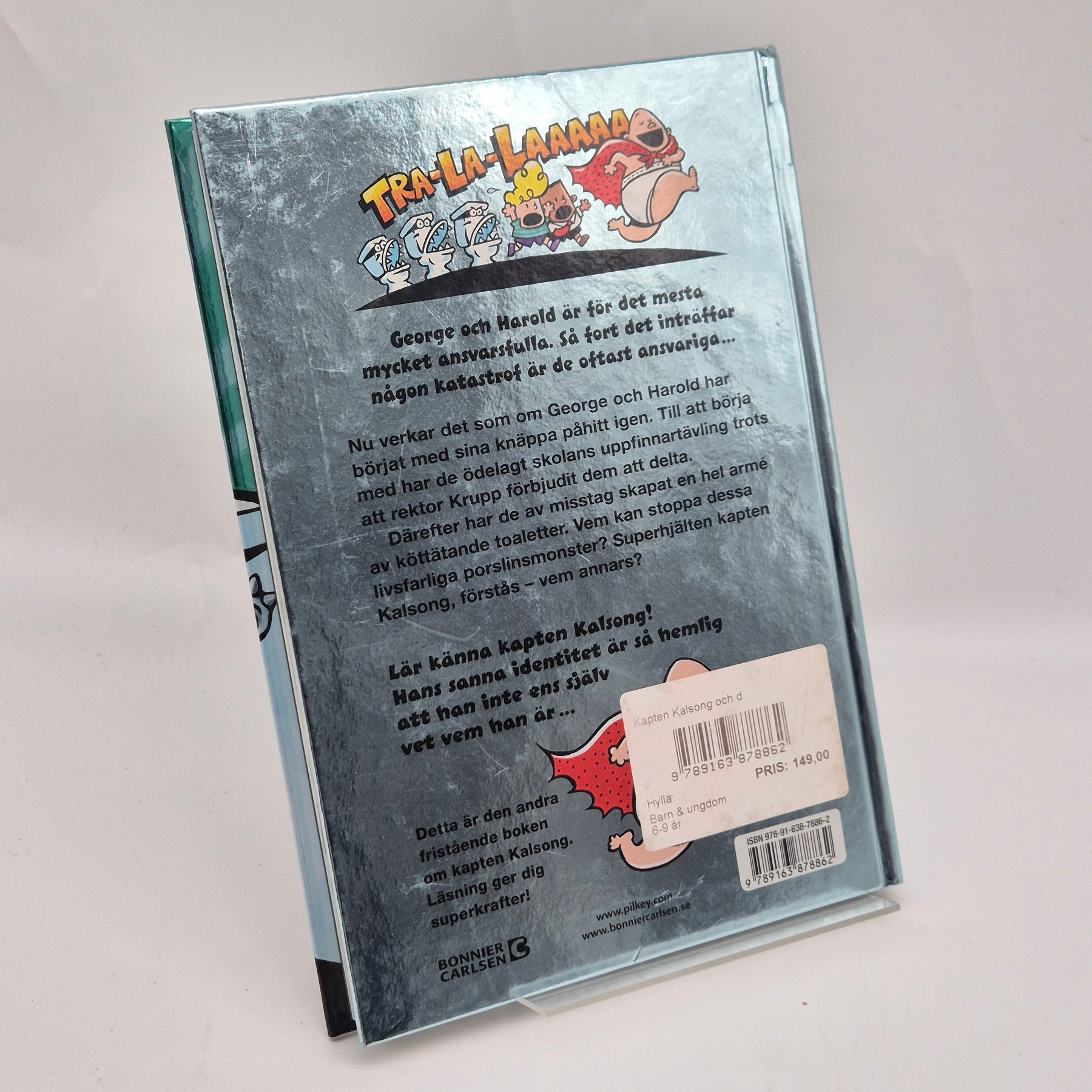 Denna bok är den andra delen i serien om Kapten Kalsong, författad av Dav Pilkey. Berättelsen är fylld med skratt, spänning och överraskande vändningar, vilket gör den perfekt för unga läsare. "Kapten Kalsong och den stora Toalettattacken" är inte bara underhållande men också ett utmärkt sätt att stimulera barns fantasi och läsförmåga. Boken är begagnad men i mycket gott skick, redo att förgylla en ny liten läsares bokhylla.Kategori | Barnböcker |
