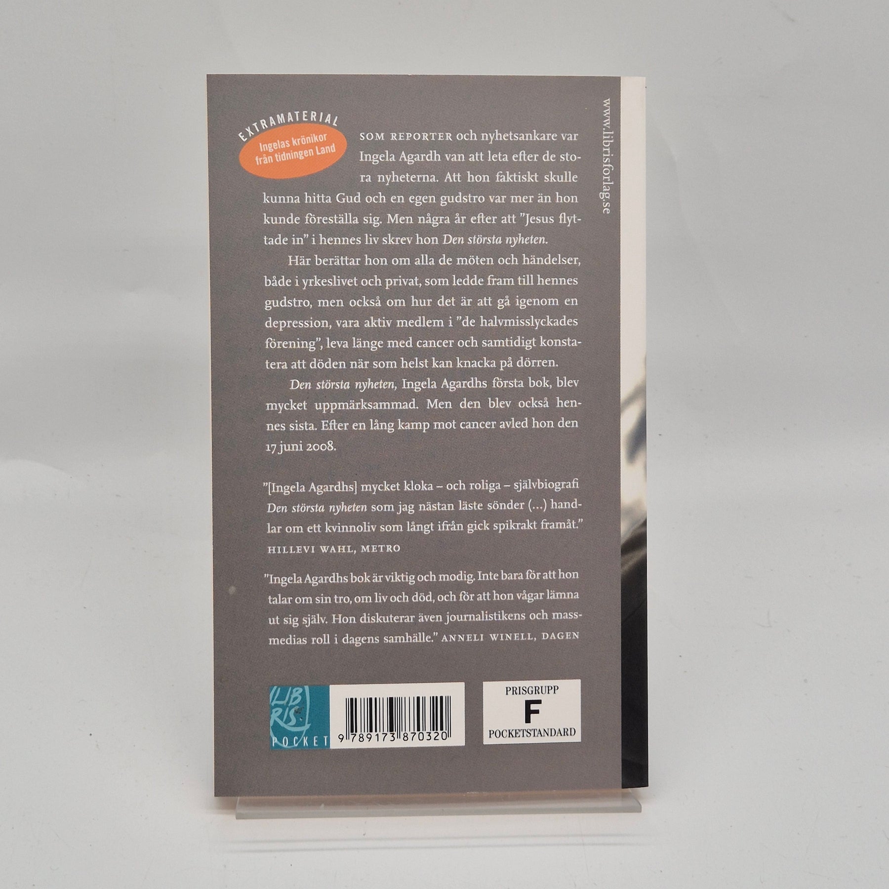 "Den största nyheten" är en personlig och djupgående självbiografi av den beundrade journalisten Ingela Agardh. Boken erbjuder en unik inblick i författarens professionella och personliga liv, berättat med både värme och skärpa. Denna bok är perfekt för läsare som uppskattar ärliga och inspirerande historier om tro, kamp och tillfrisknande. Den befinner sig i begagnat skick men är välvårdad och klar att tillföra värde till din boksamling.