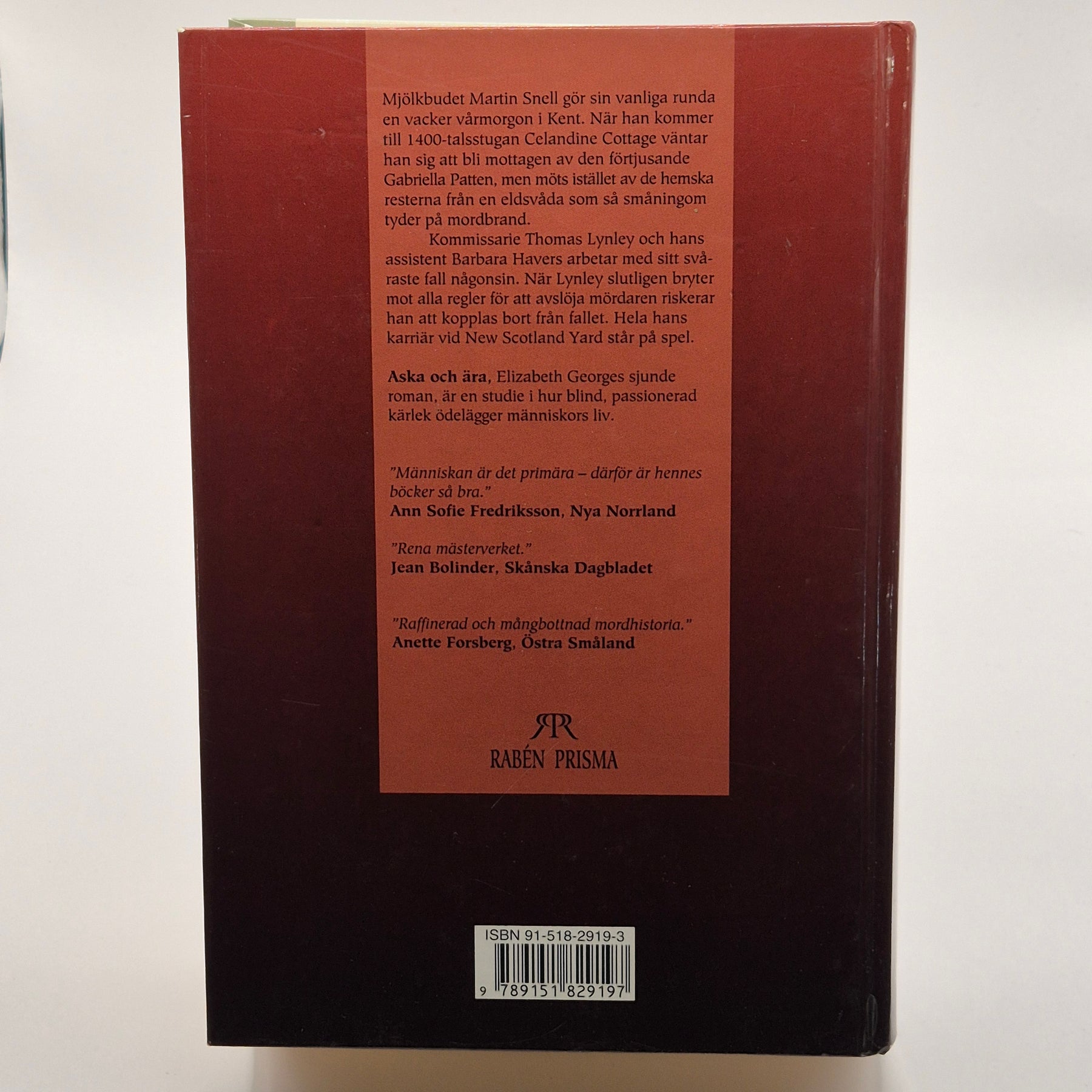 "Aska och Ära" är Elizabeth Georges nionde utgåva i serien som bländar läsarna med sina intrikata plotter och djupa karaktärsutveckling. Denna bok bjuder på en fängslande berättelse som utforskar maktstrukturer och personliga konflikter. Med sitt detaljrika språk och komplexa intrig är den ideal för de som älskar psykologiska thrillers. Boken är begagnad men i mycket gott skick, vilket gör den till ett utmärkt tillägg i varje bokhylla.