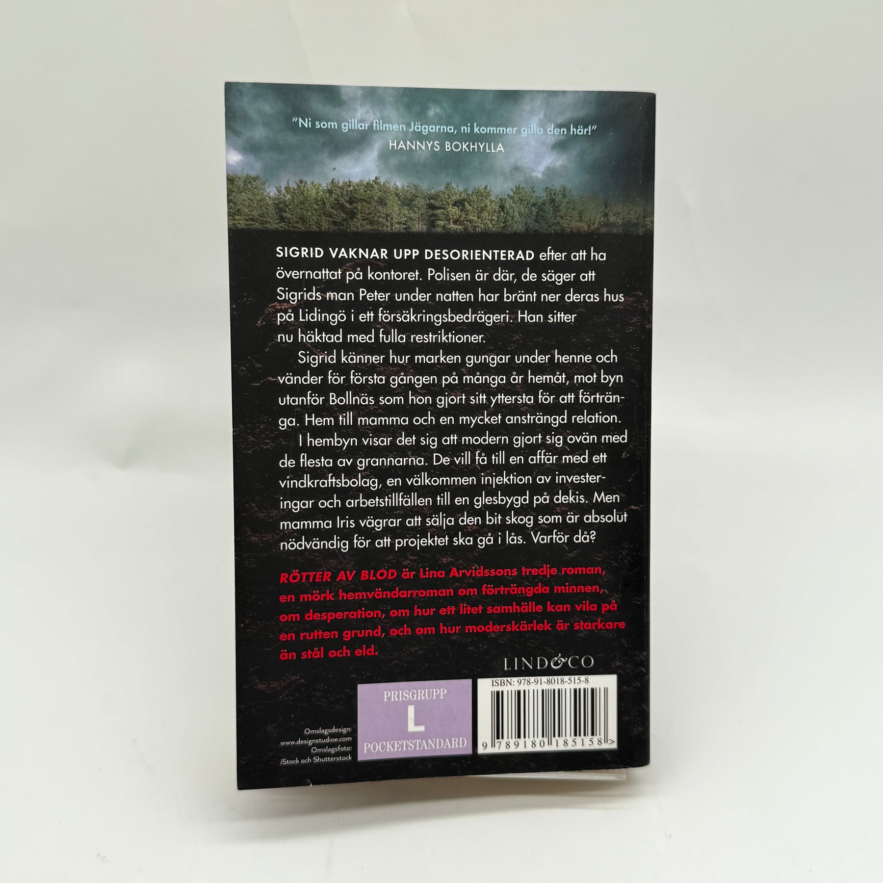 "Rötter av Blod" är den tredje romanen av Lina Arvidsson, som utforskar teman av familj, hemligheter och överlevnad i en svensk småstad. Det är en idealisk läsning för dig som älskar psykologiska thrillers med starka karaktärsporträtt. Boken är begagnad men i mycket gott skick, vilket gör den till ett utmärkt tillägg till din boksamling.Produktspecifikationer