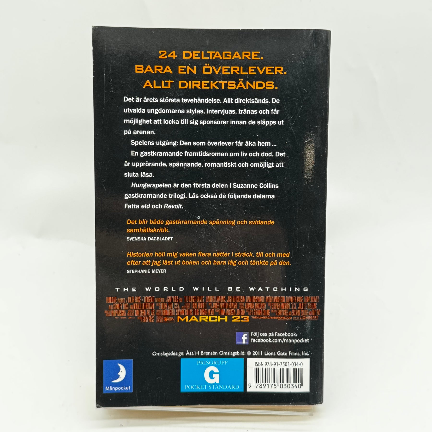 "Hungerspelen" är första delen i Suzanne Collins älskade trilogi som blivit en global fenomen. Den här pocketutgåvan är perfekt för läsare som uppskattar gastkramande äventyr om liv och död i en dystopisk framtid. Boken är lättläst och tar dig på en emotionell berg-och-dal-bana, och är i gott begagnat skick, vilket gör den idealisk för både nya läsare och samlare.| Kategori | Bok |