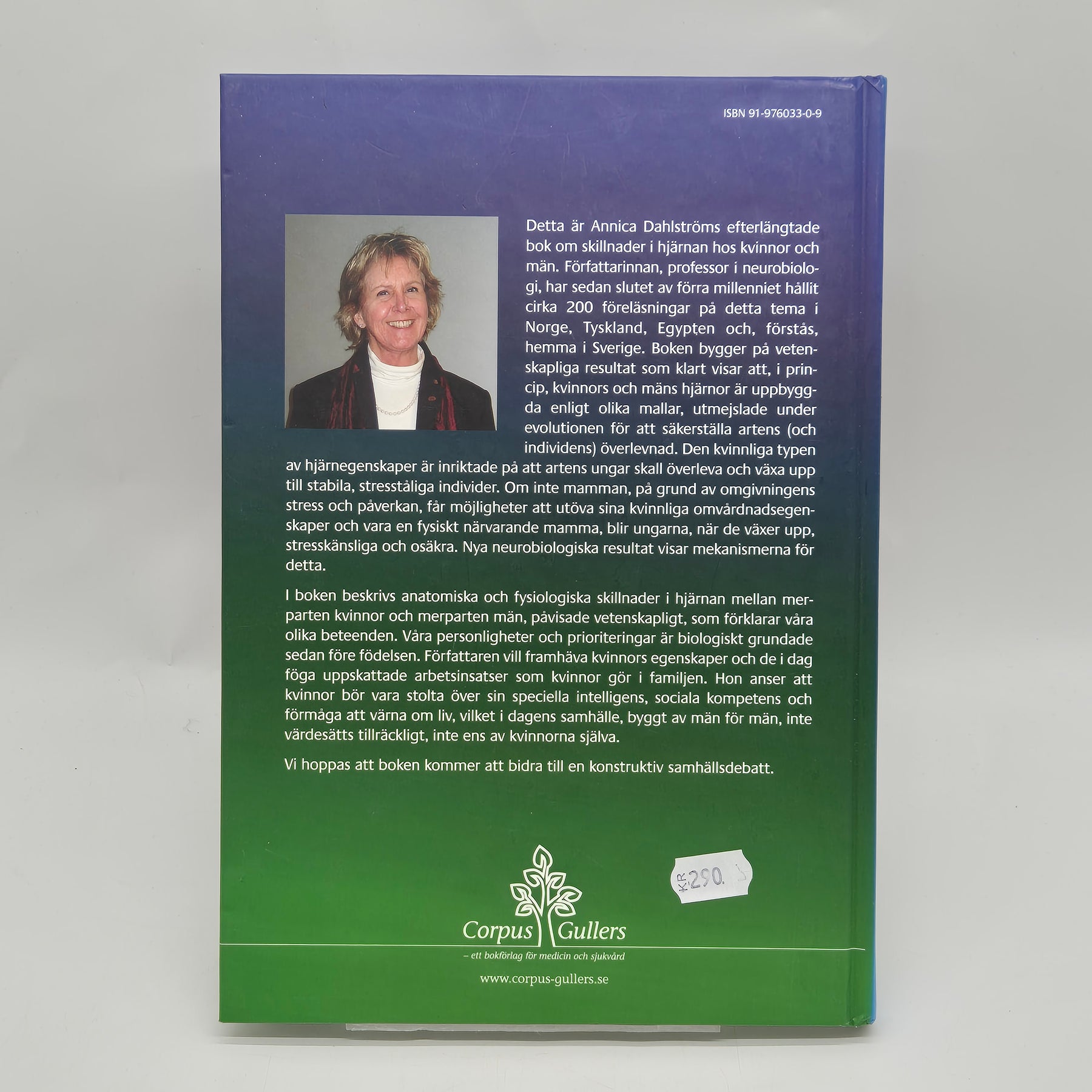 Detta är en inbunden bok av Annica Dahlström, professor i neurobiologi, utgiven av Corpus/Gullers. Boken beskriver biologiska och fysiologiska skillnader mellan kvinnors och mäns hjärnor och hur detta påverkar beteende, personlighet och samhälle. Ett intressant fynd för studenter, forskningsintresserade och dig som vill läsa vidare bortom rubrikerna. Exemplaret är begagnat men i gott skick med endast lätta bruksspår på omslaget.3. Produktspecifikationer