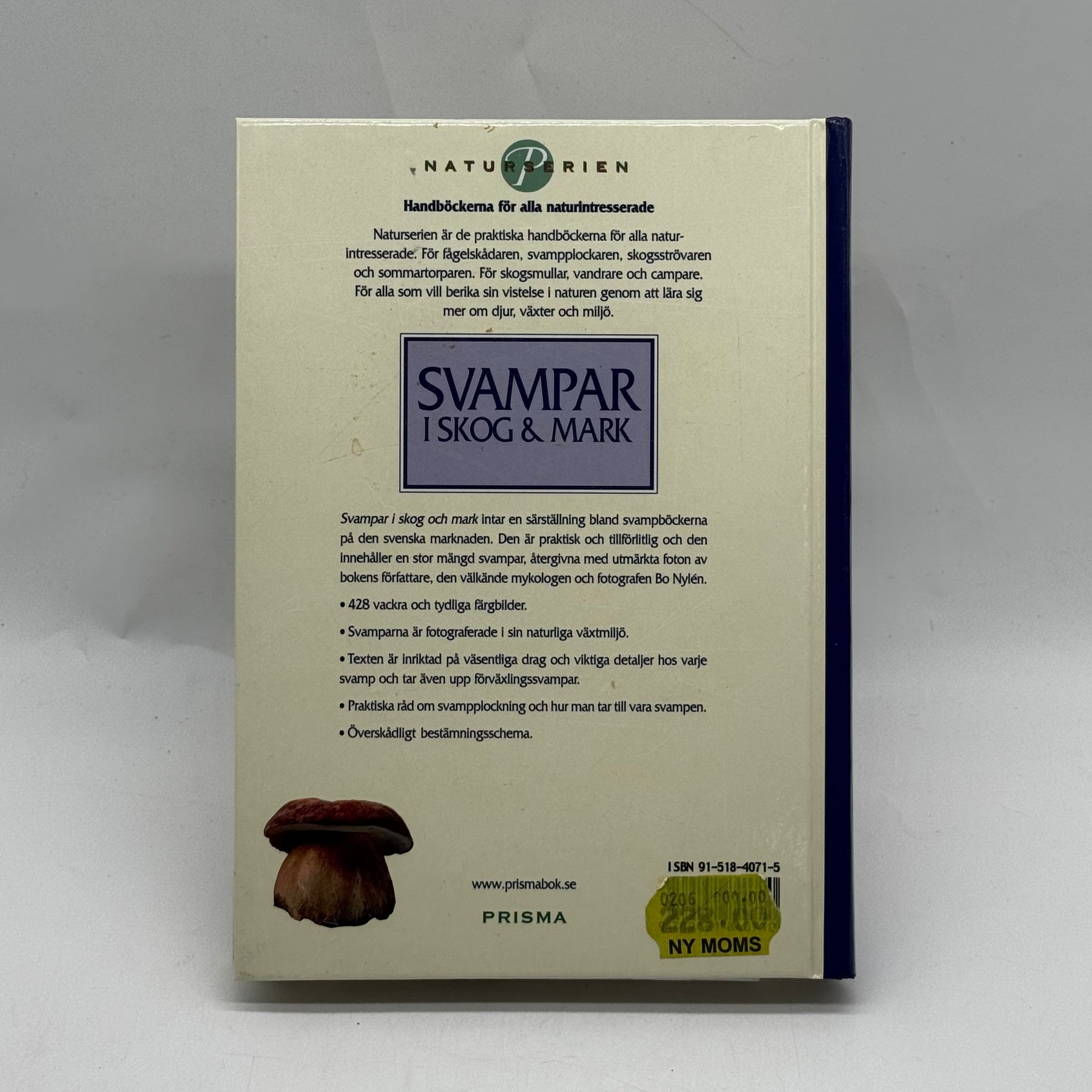 Detta är en illustrerad fackbok från serien Naturserien, utgiven av Prisma, med fokus på identifiering av vilda svampar i svensk natur. Boken innehåller tydliga färgfotografier, beskrivningar och praktiska råd för säker svampplockning – idealisk både för nybörjare och mer erfarna svampentusiaster. Exemplaret är begagnat men i mycket gott skick med endast lätta spår av användning.3. Produktspecifikationer