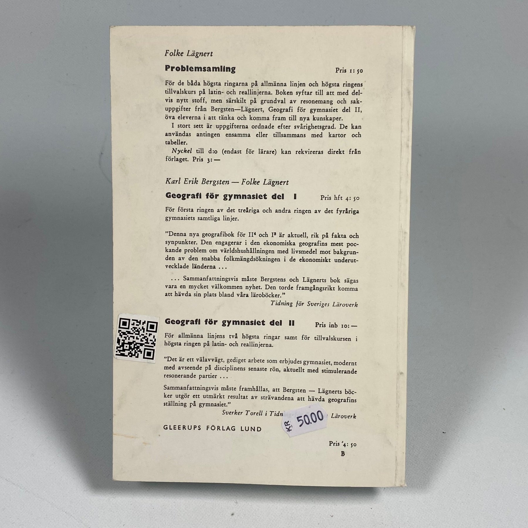 En lärobok i ämnet geografi avsedd för gymnasieelever. Boken är använd för att ge en bred översikt av geografiska principer och är i gott skick trots tidigare användning.