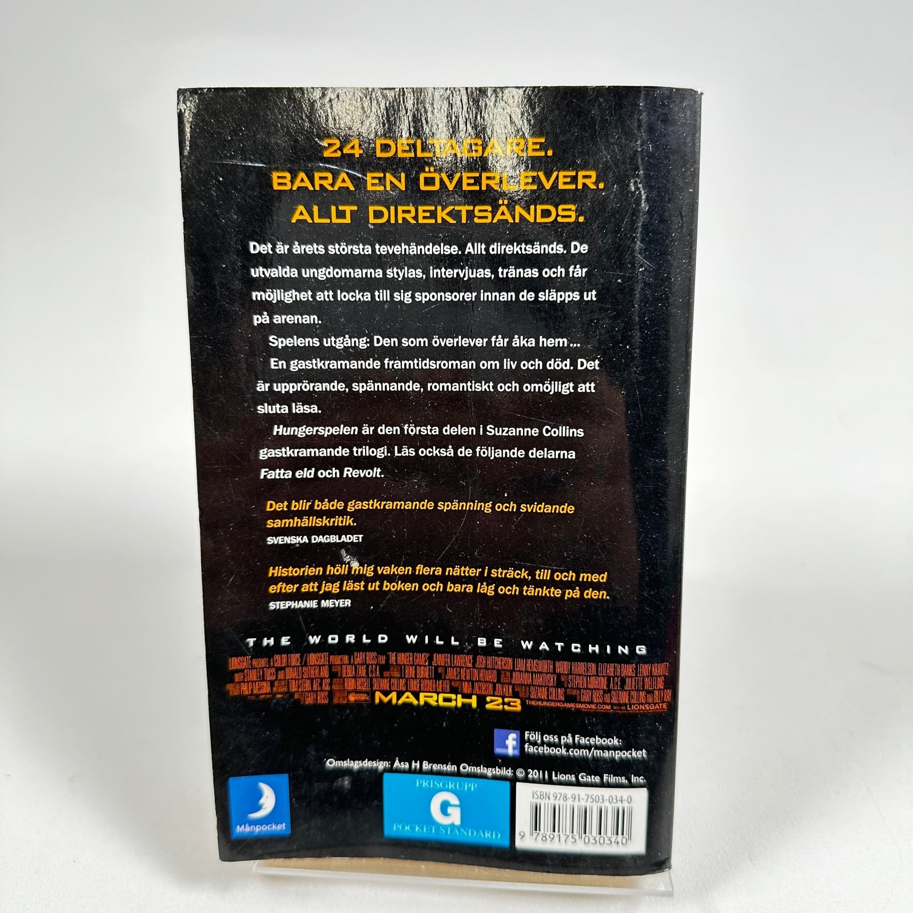 Boken "Hungerspelen" är en del av en populär dystopisk trilogi. Den här pocketutgåvan erbjuder en spännande historia om överlevnad och samhällskritik. Boken är begagnad men i gott skick.Productspecifikationer