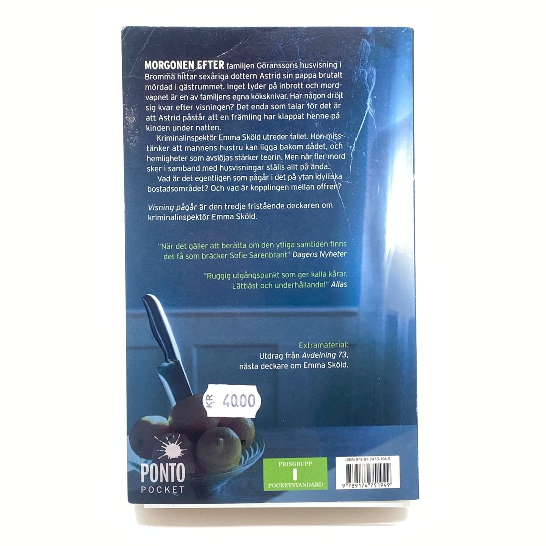 "Visning pågår" är den tredje boken i serien om kriminalinspektör Emma Sköld. Sofie Sarenbrant levererar en fängslande historia med oväntade vändningar och djupa karaktärsporträtt. Perfekt för dig som älskar spänning och mysterier. Boken är begagnad men i mycket gott skick, vilket ger en utmärkt läsupplevelse till ett fördelaktigt pris.