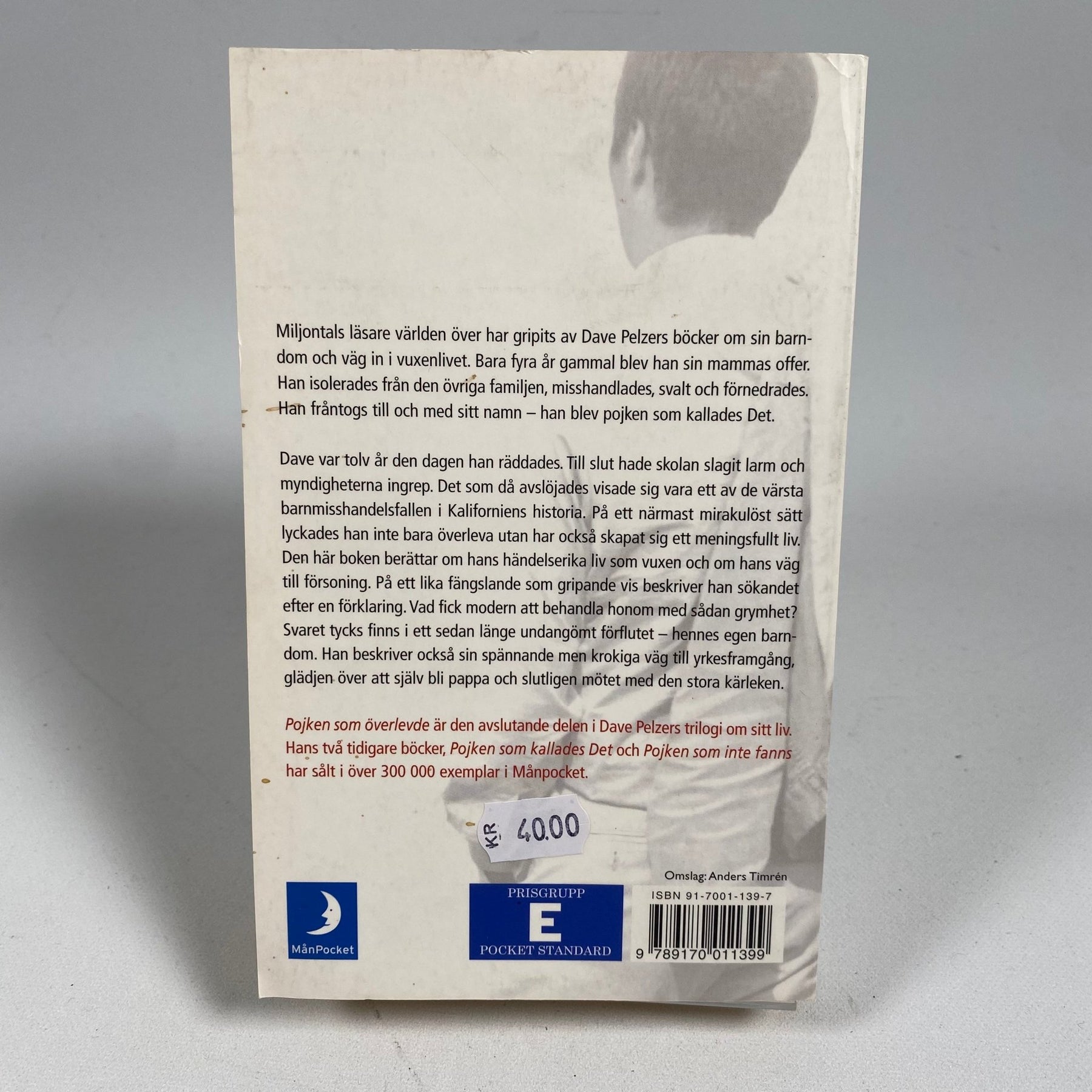 Denna pocketbok av Dave Pelzer, "Pojken som överlevde", är en gripande berättelse om författarens egna erfarenheter som barn. Boken behandlar teman som missbruk och överlevnad och är framställd i ett lättläst format. Skick: Begagnad men i gott skick.
