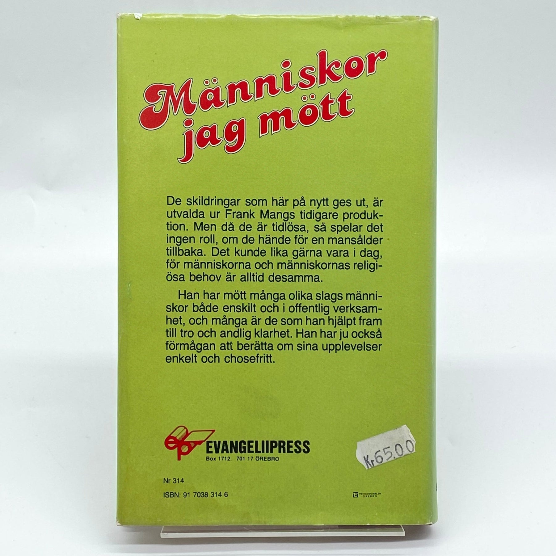 "Människor jag mött" är en bok fylld med personliga berättelser och reflektioner av den kända predikanten Frank Mangs. Boken erbjuder en unik inblick i möten med olika människor som påverkat hans liv och arbete. Idealisk för den som uppskattar biografiska verk med religiöst och existentiellt djup. Denna utgåva är begagnad men i gott skick, vilket gör den perfekt för samlare eller som en tankeväckande gåva.3. Produktspecifikationer