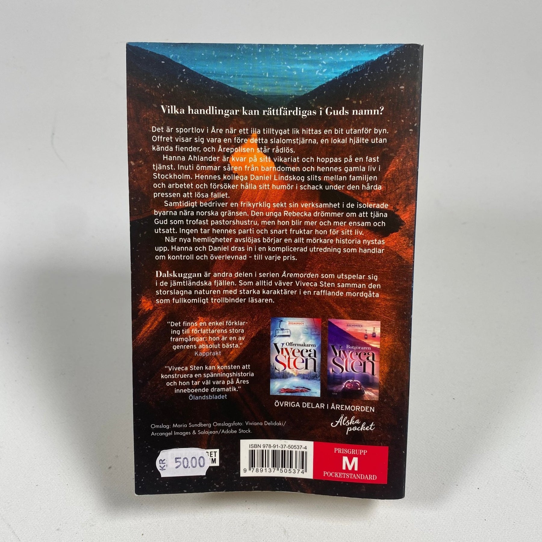 En spännande deckare av Viveca Sten, "Dalskuggan" erbjuder en intrig som utvecklas i skärningspunkten mellan det oförklarliga och den mörka verkligheten. Boken är använd men i gott skick och erbjuder en engagerande läsupplevelse för alla som uppskattar nordisk kriminalfiktion.