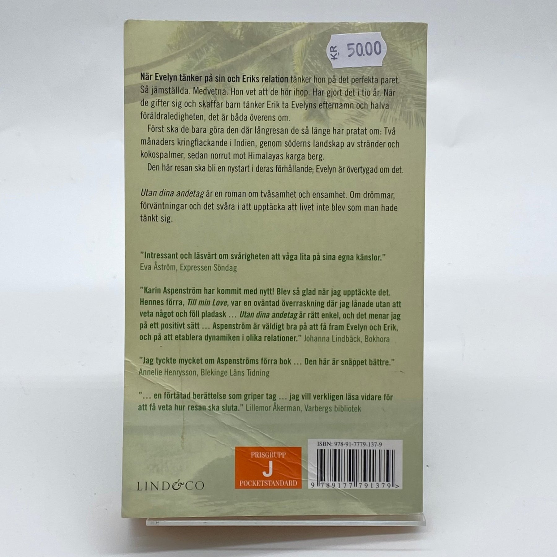 "Utan dina andetag" är en berättelse som fångar läsarens hjärta med dess djupgående utforskning av relationer och personlig utveckling. Denna bok från Lind&Co erbjuder en fascinerande läsning med sitt välutvecklade karaktärsbygge och rika detaljrikedom. Perfekt för den som älskar engagerande och tankeväckande litteratur. Boken är begagnad men i mycket gott skick, vilket gör den till ett utmärkt köp.3. Produktspecifikationer