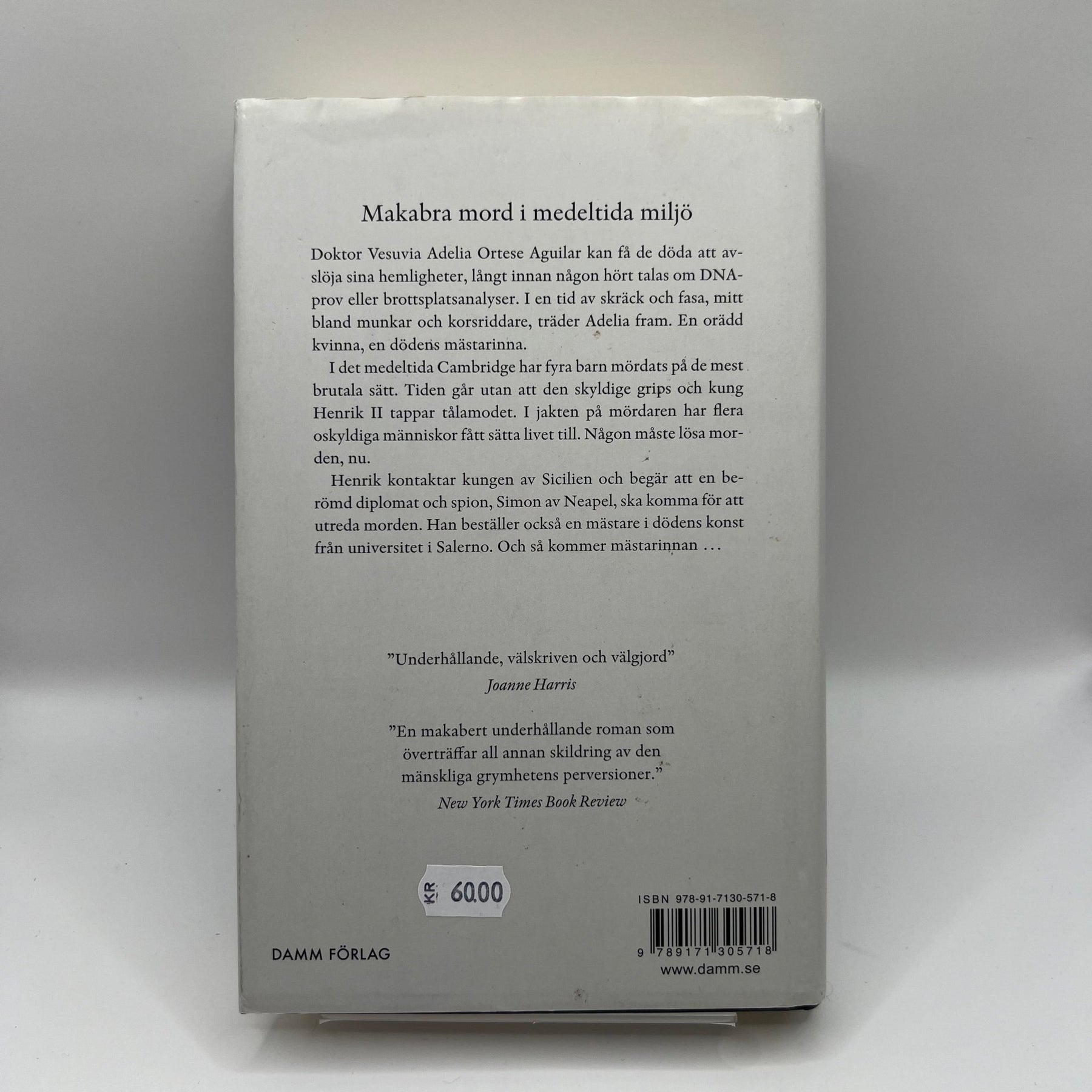 Dödens Mästarinna av Ariana Franklin är en spännande thriller som utspelar sig i medeltida miljö. Boken är en fängslande berättelse fylld med mord och mysterier, använd men i gott skick.