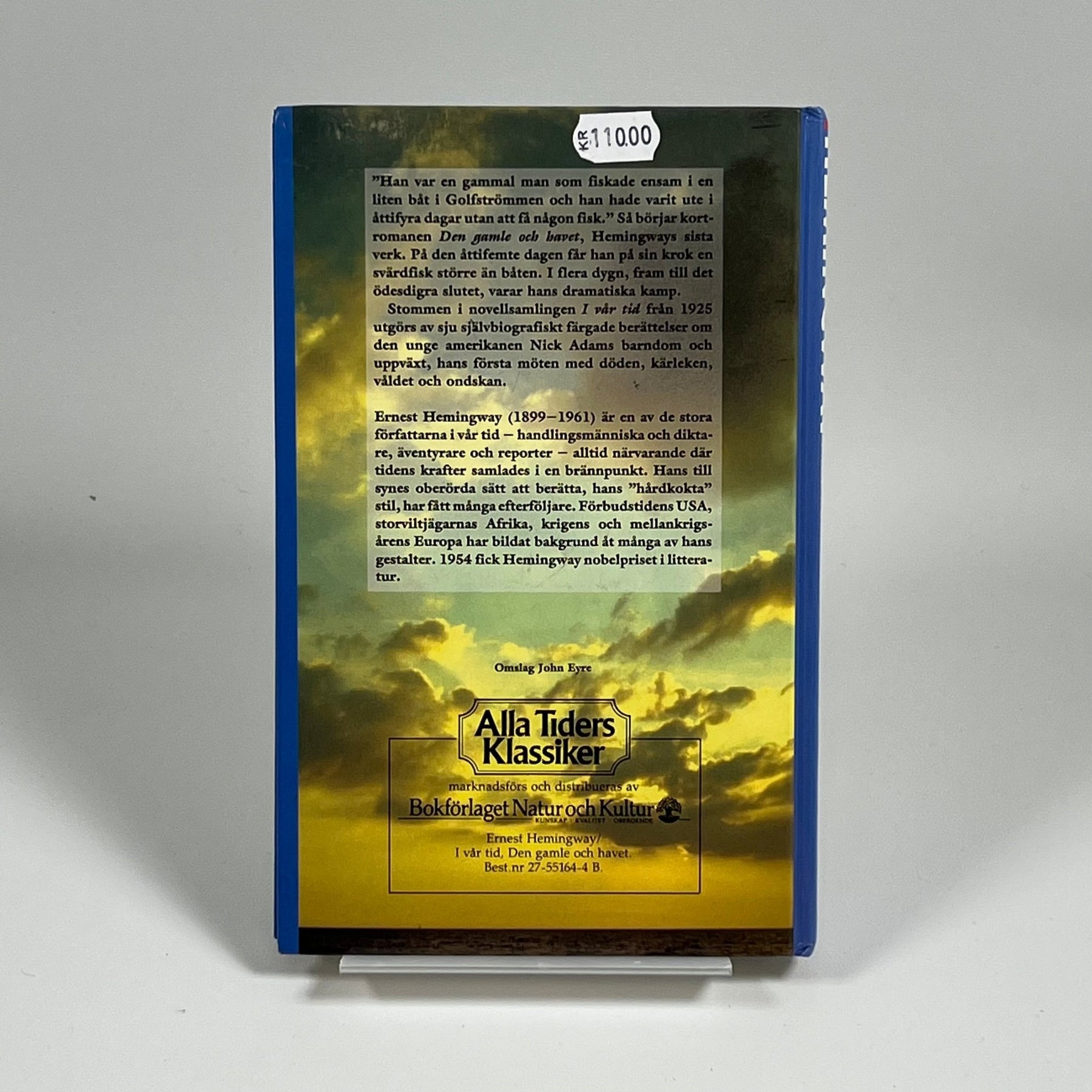 En begagnad bok som består av Ernest Hemingways berömda verk "Den gamle och havet" samt novellsamlingen "I vår tid". Idealisk för entusiaster av klassisk litteratur och Hemingways distinkta stil. Bokens skick är bra, med lätta bruksspår på omslaget.