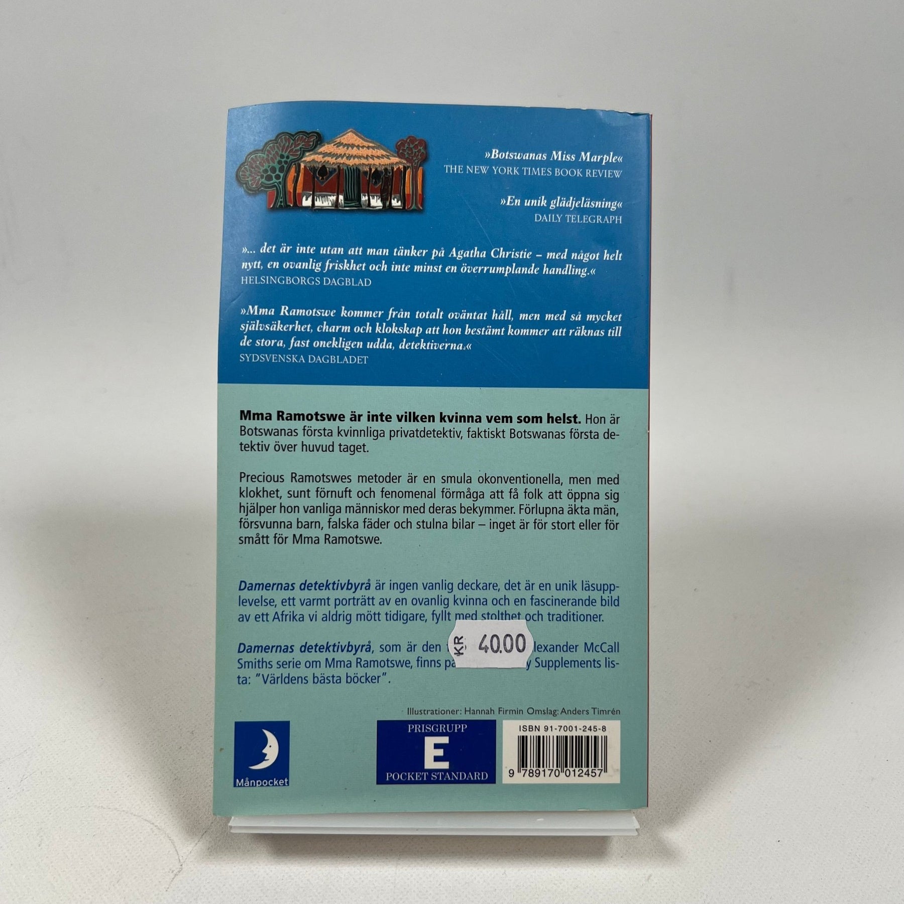 Boken "Damernas Detektivbyrå" är en charmig och underhållande berättelse skriven av Alexander McCall Smith. Den här utgåvan är tryckt av Månpocket och erbjuder läsaren en historia full av värme och humor. Boken är begagnad men är i gott skick utan synliga skador eller markeringar.