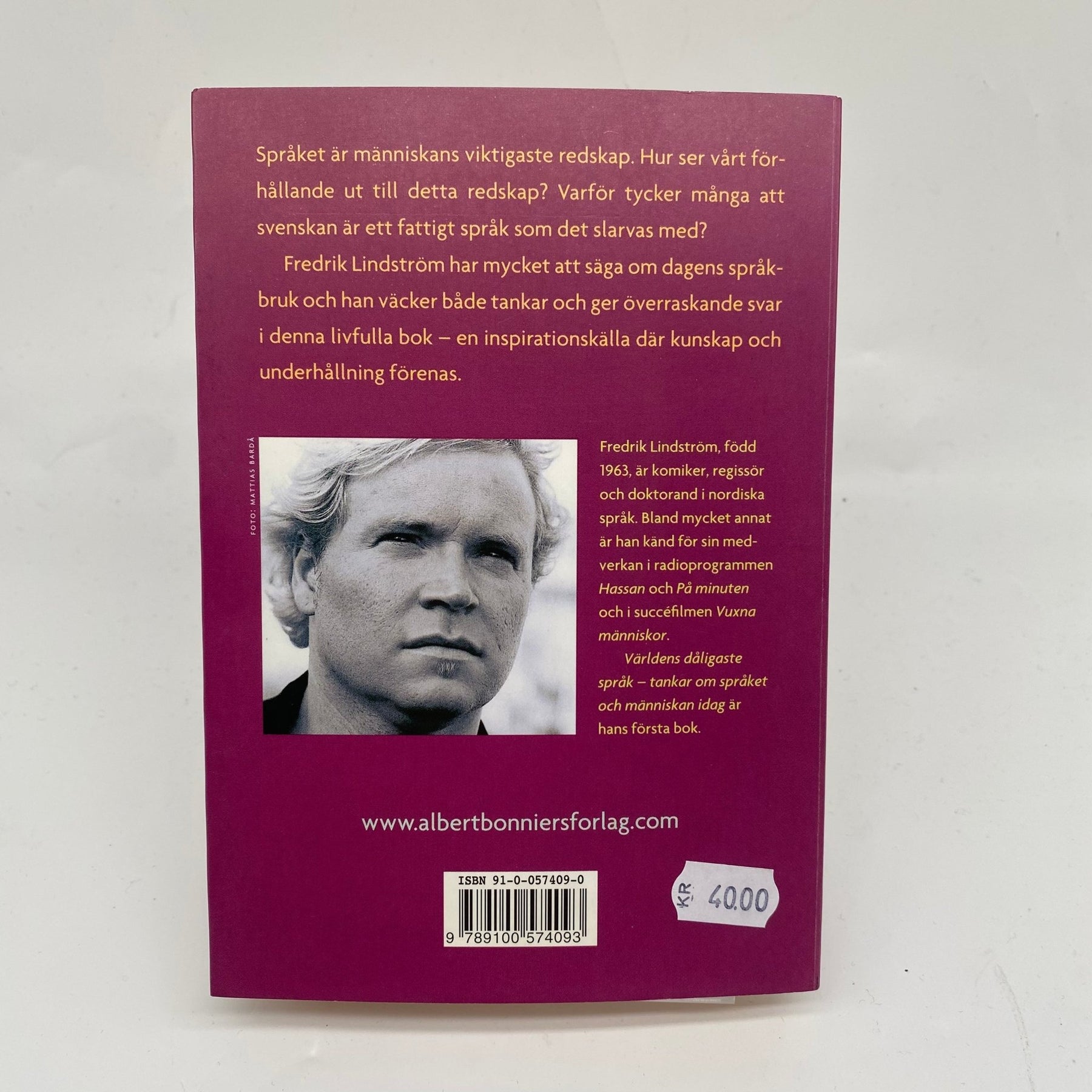 Bok i pocketformat som utforskar det svenska språket och människans användning av detta. Författad av Fredrik Lindström, känd för sina insiktsfulla och underhållande texter om språkets roll i samhället. Använd skick men i gott skick, perfekt för intresserade av språk och kultur.