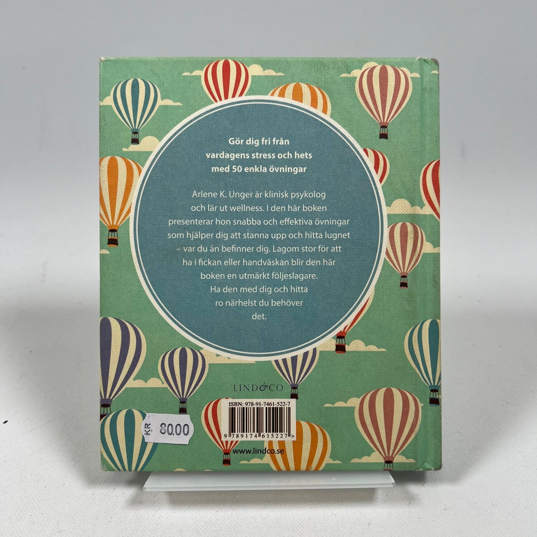 En bok av Arlene K. Unger som erbjuder 50 mindfulness- och avslappningsövningar för att minska stress och öka välbefinnandet. I gott skick, idealisk för de som söker praktiska tips för mental avkoppling.