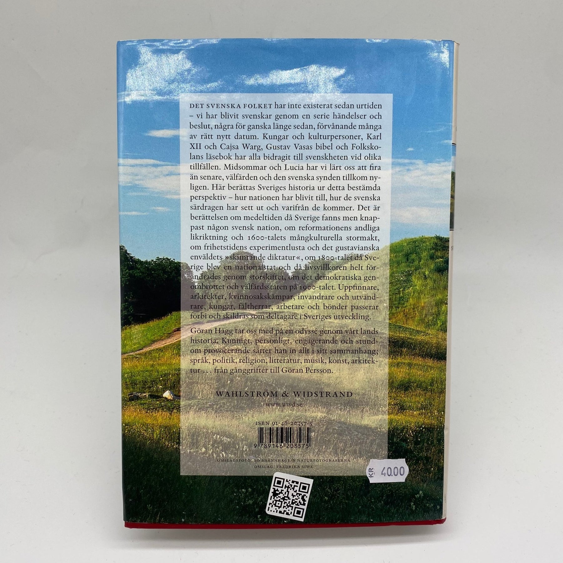 Ett inbundet exemplar av Göran Häggs bok "Svenskhetens historia". Boken utforskar Sveriges identitet och historia från medeltiden till modernt 1600-tal. Använd men i gott skick, perfekt för historieintresserade.