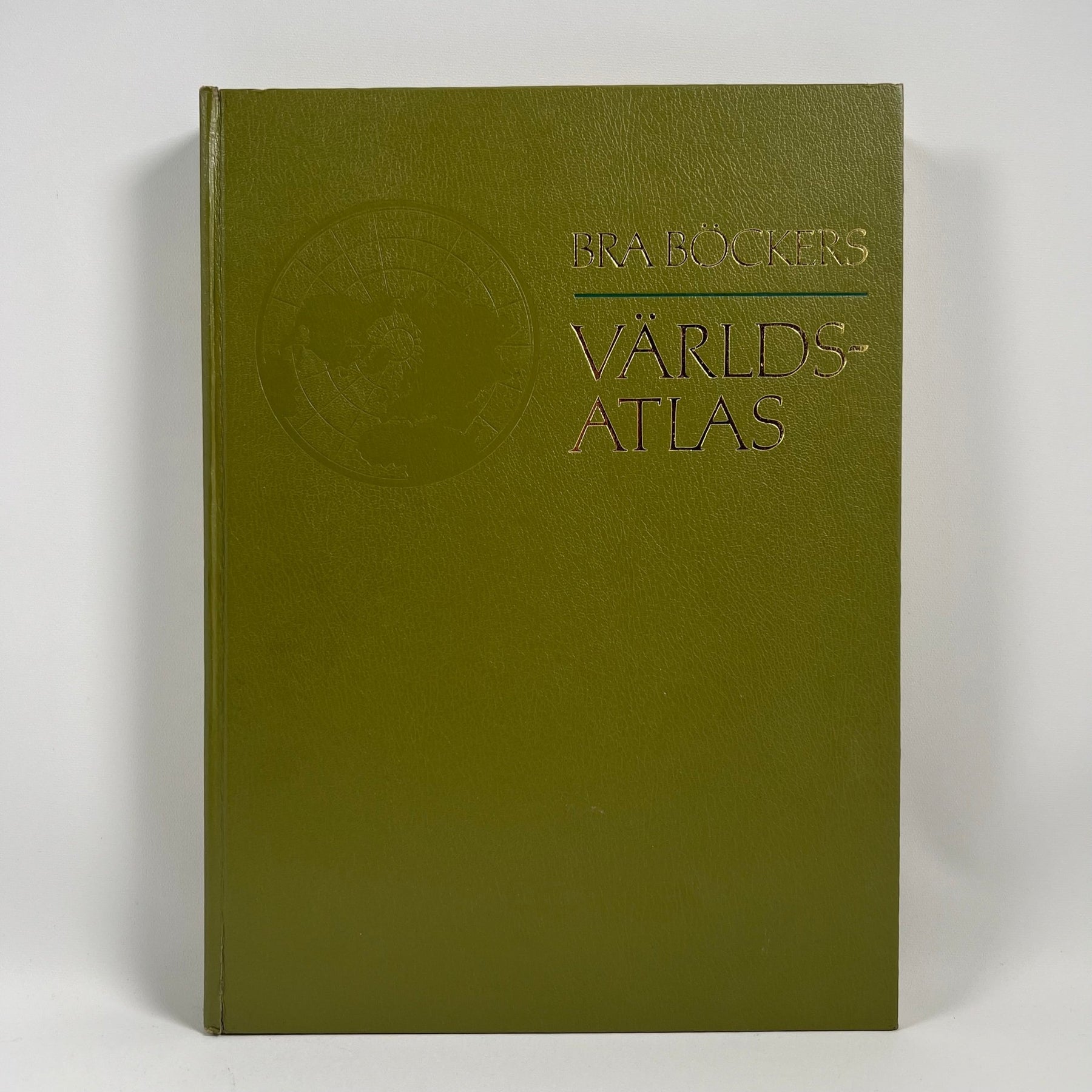 En gedigen världsatlas av Braböckers. Används för geografisk uppslagsverksamhet. Boken är i gott skick med mindre tecken på användning.