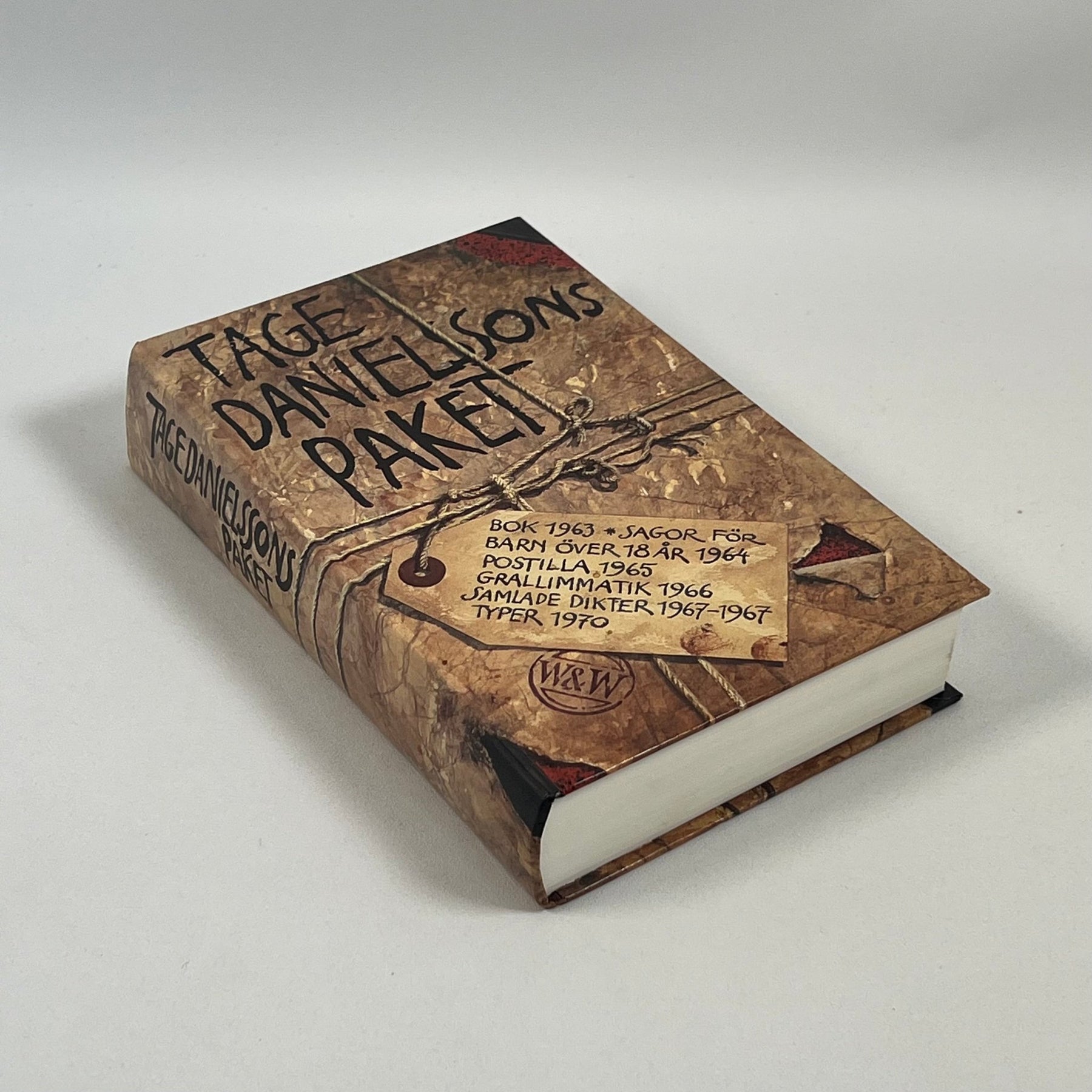 Bok inbunden med ett omslag som påminner om ett paket. En spännande och litterär skatt för svenska bokälskare, i gott använt skick.