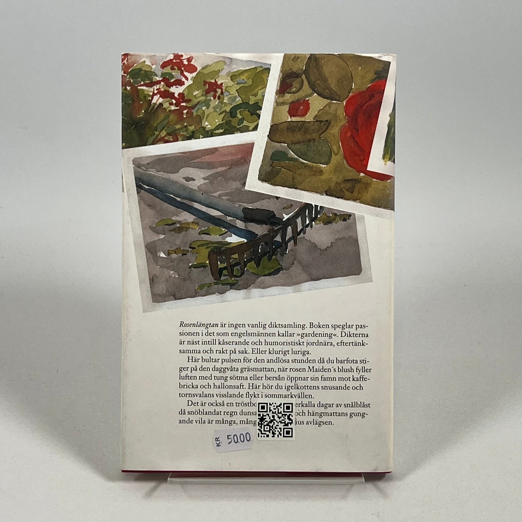 "Rosenlängtan" är en dikt- och bildbok som utforskar teman av natur och årstidernas växlingar. Boken innehåller både poesi och konstnärliga illustrationer vilket gör den till en visuell som poetisk upplevelse. Boken är använd men i gott skick.