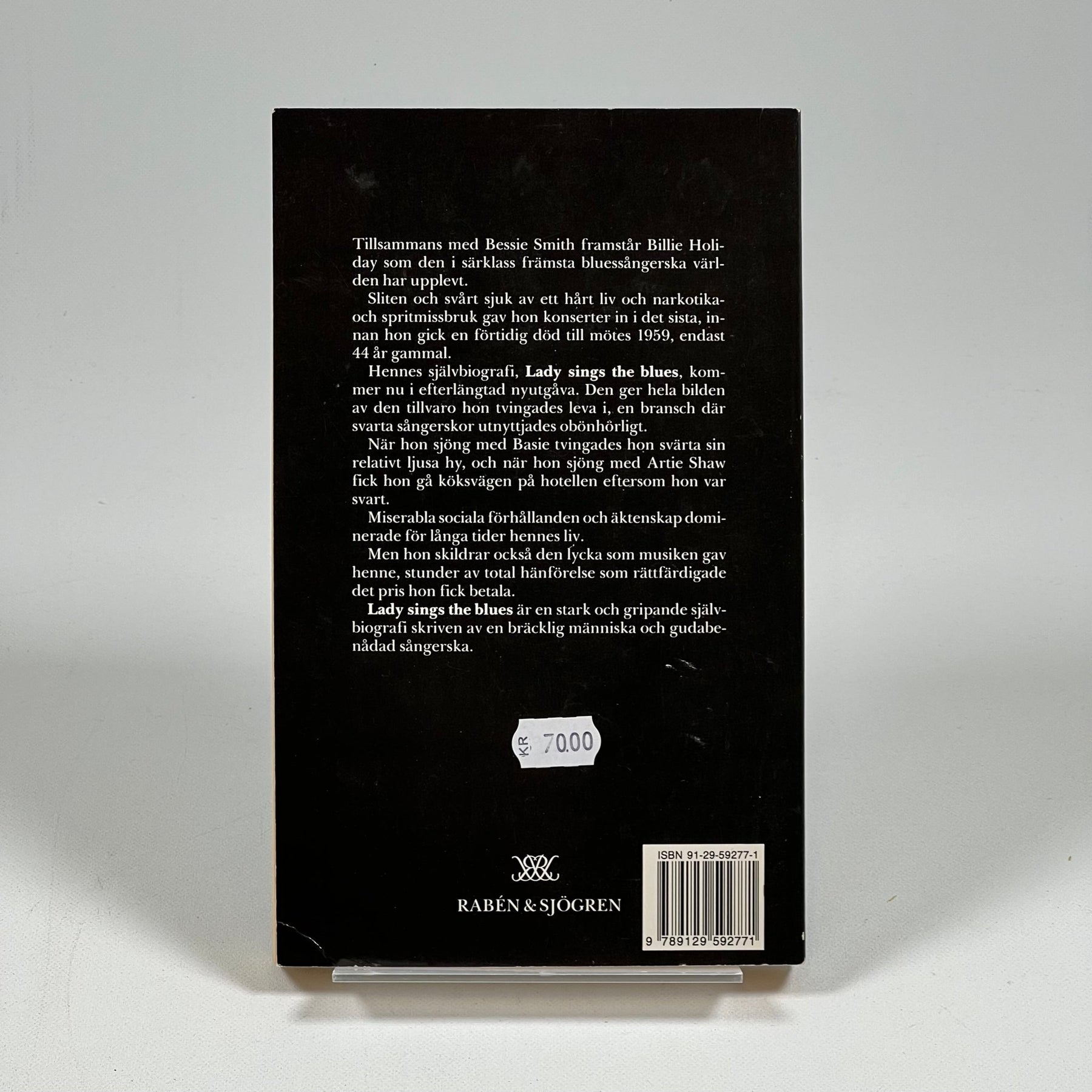En fängslande biografi om jazzikonen Billie Holiday, betitlad "Lady Sings the Blues". Boken delar intima detaljer från Holidays liv och karriär, och erbjuder djupgående insyn i hennes resa och de utmaningar hon mötte. Skicket är begagnat men gott.