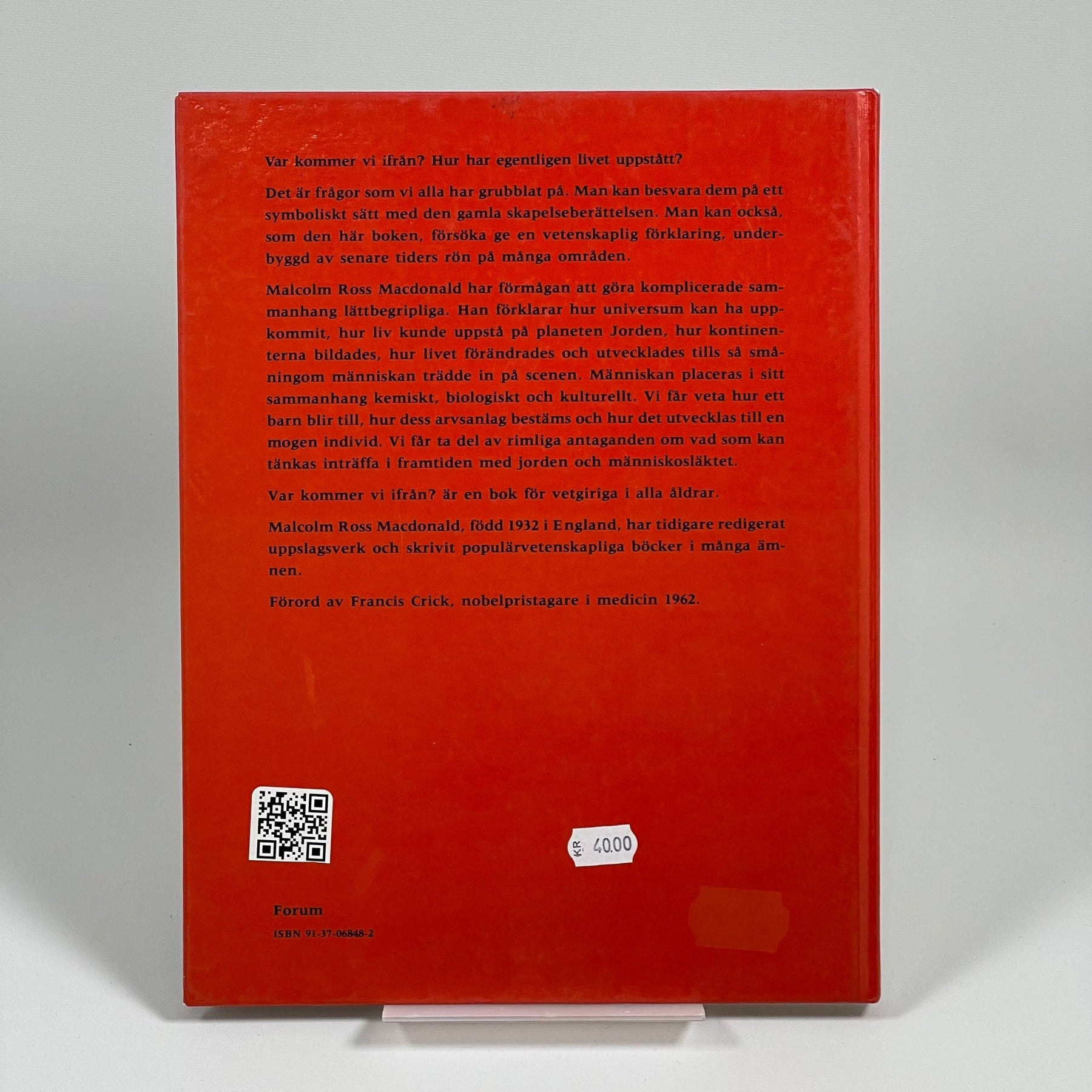 Denna bok, "Var kommer vi ifrån?" av Malcolm Ross Macdonald, utforskar livets ursprung och utveckling. Det är en begagnad bok men fortfarande i gott skick, perfekt för den som är intresserad av vetenskapshistoria och evolution.