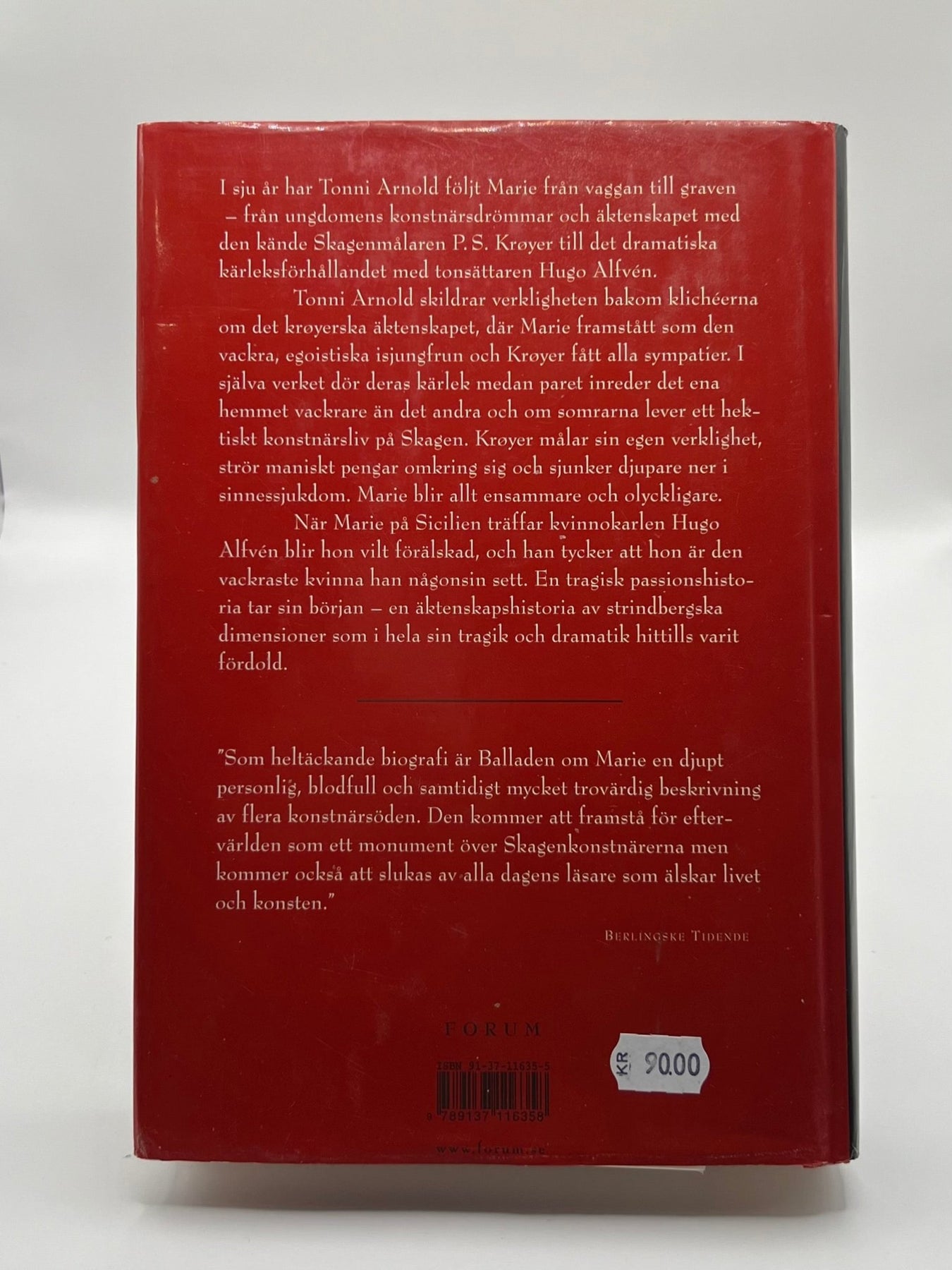 En biografi i bokform om Marie Krøyer, skriven av Tonni Arnold. Berättar levnadshistorien av den berömda konstnären från unga drömmar och äktenskap till kärleksförhållandet med Hugo Alfvén och dess tragiska utfall. Boken är begagnad men i gott skick.