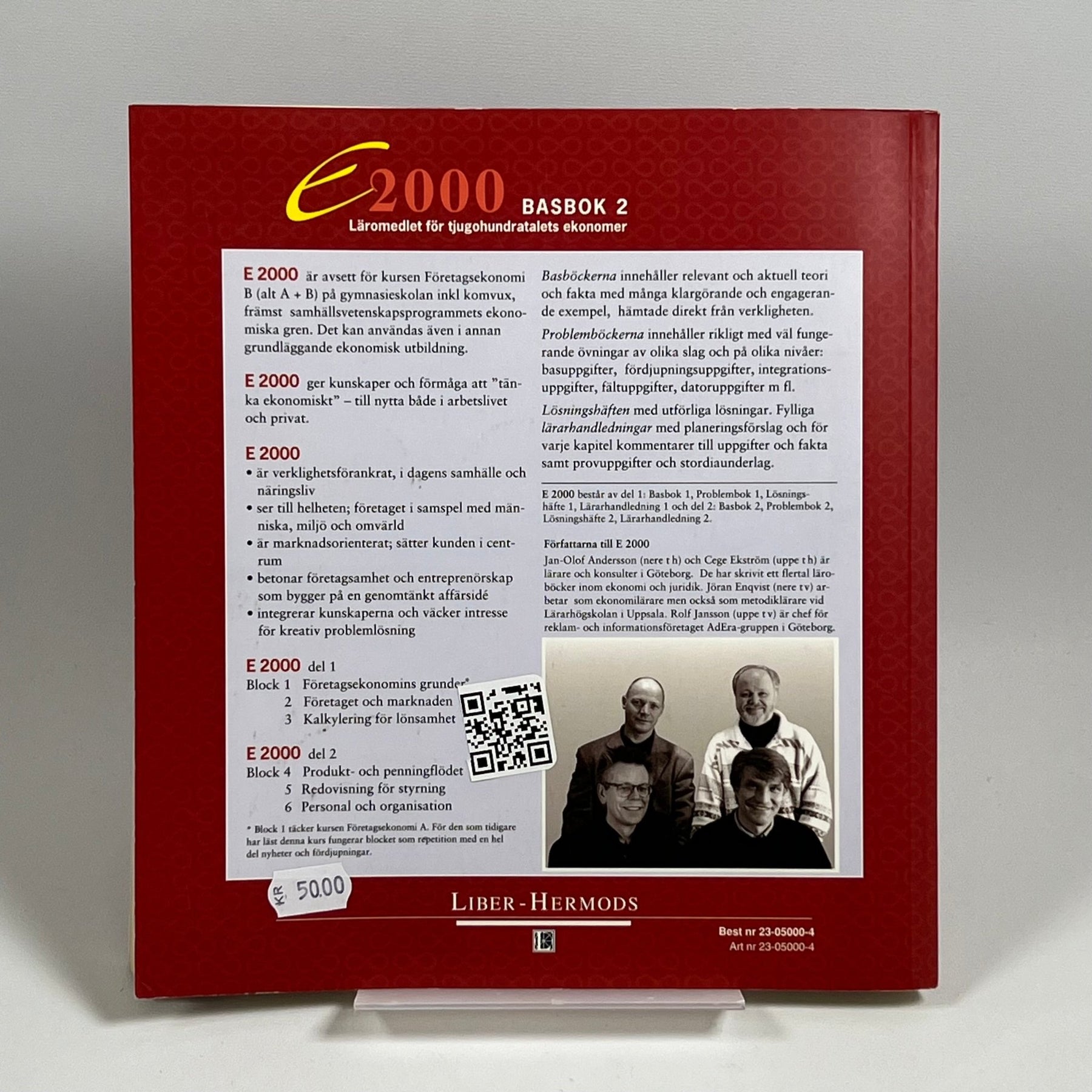 E 2000 Basbok 2 är en lärobok inom företagsekonomi som fokuserar på grundläggande och avancerade aspekter av ekonomistyrning och affärsverksamhetens ekonomi. Den är avsedd för gymnasie- och universitetsstudenter samt yrkesverksamma som vill fördjupa sina kunskaper. Boken är i använt skick men väl bevarad.