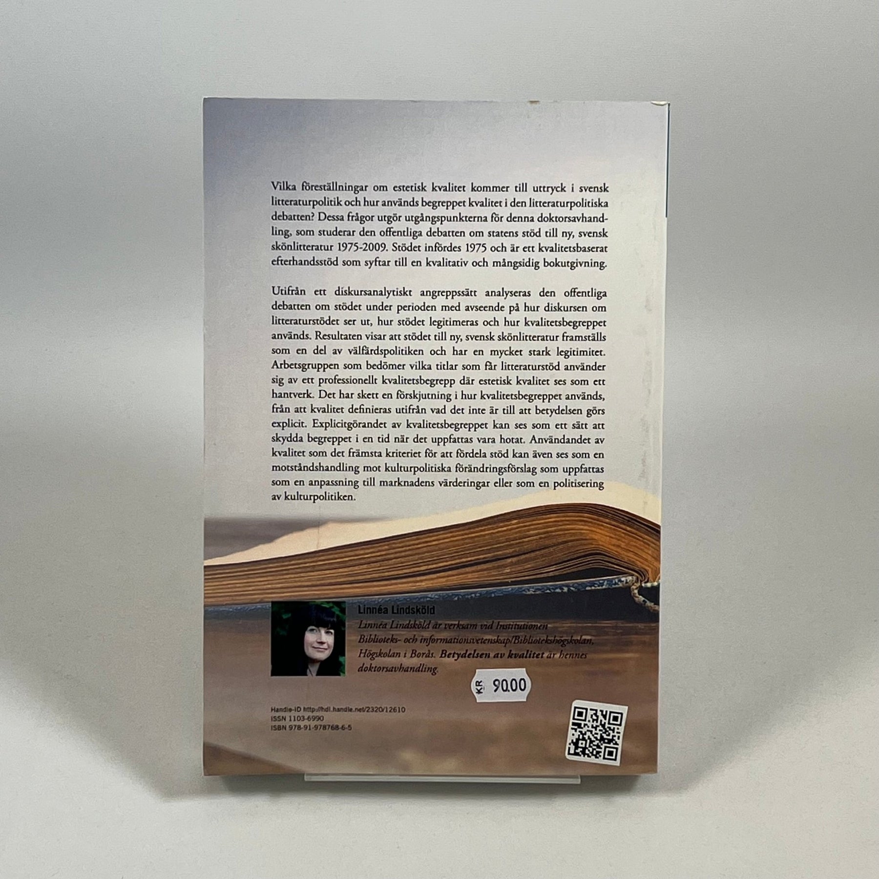 Denna bok utforskar diskurser kring statligt stöd till svensk skönlitteratur mellan åren 1975 och 2009. Det är en akademisk text som undersöker hur kvalitetsbegreppet används och utmanas i litteraturens värld.