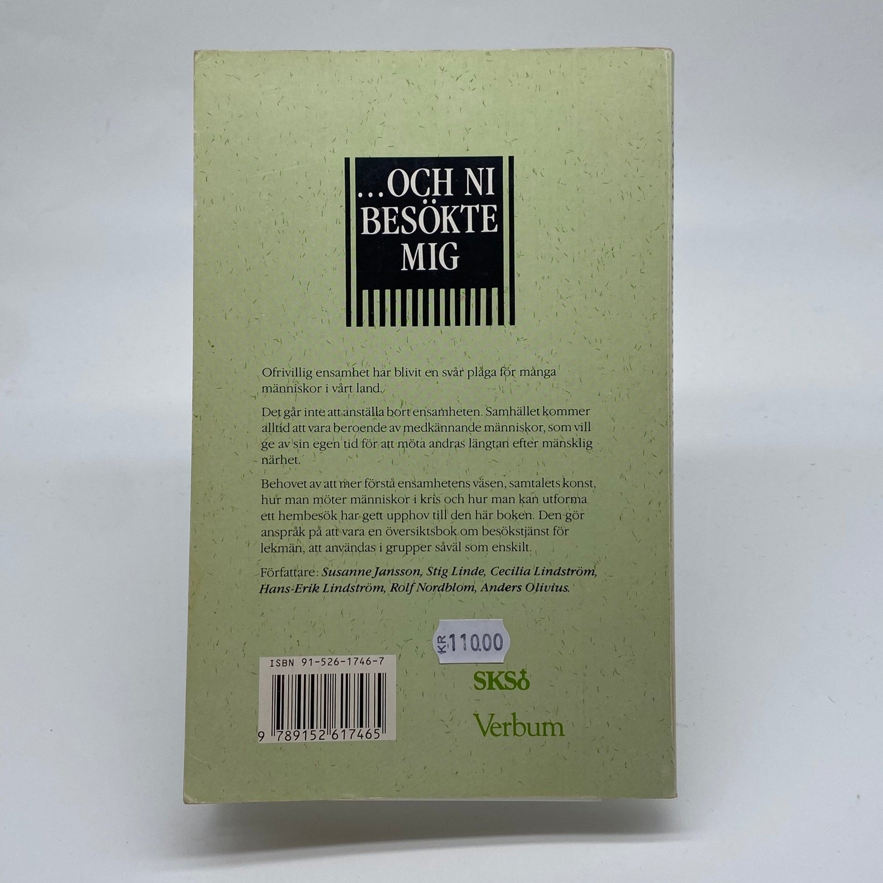 Denna bok, "Och ni besökte mig", är en handbok i besökstjänst som ger vägledning för att förstå och praktisera konsten att möta människor i olika livssituationer. Boken är använd för de som vill engagera sig i volontärarbete eller förbättra sina interpersonella färdigheter. Den är begagnad men i gott skick.